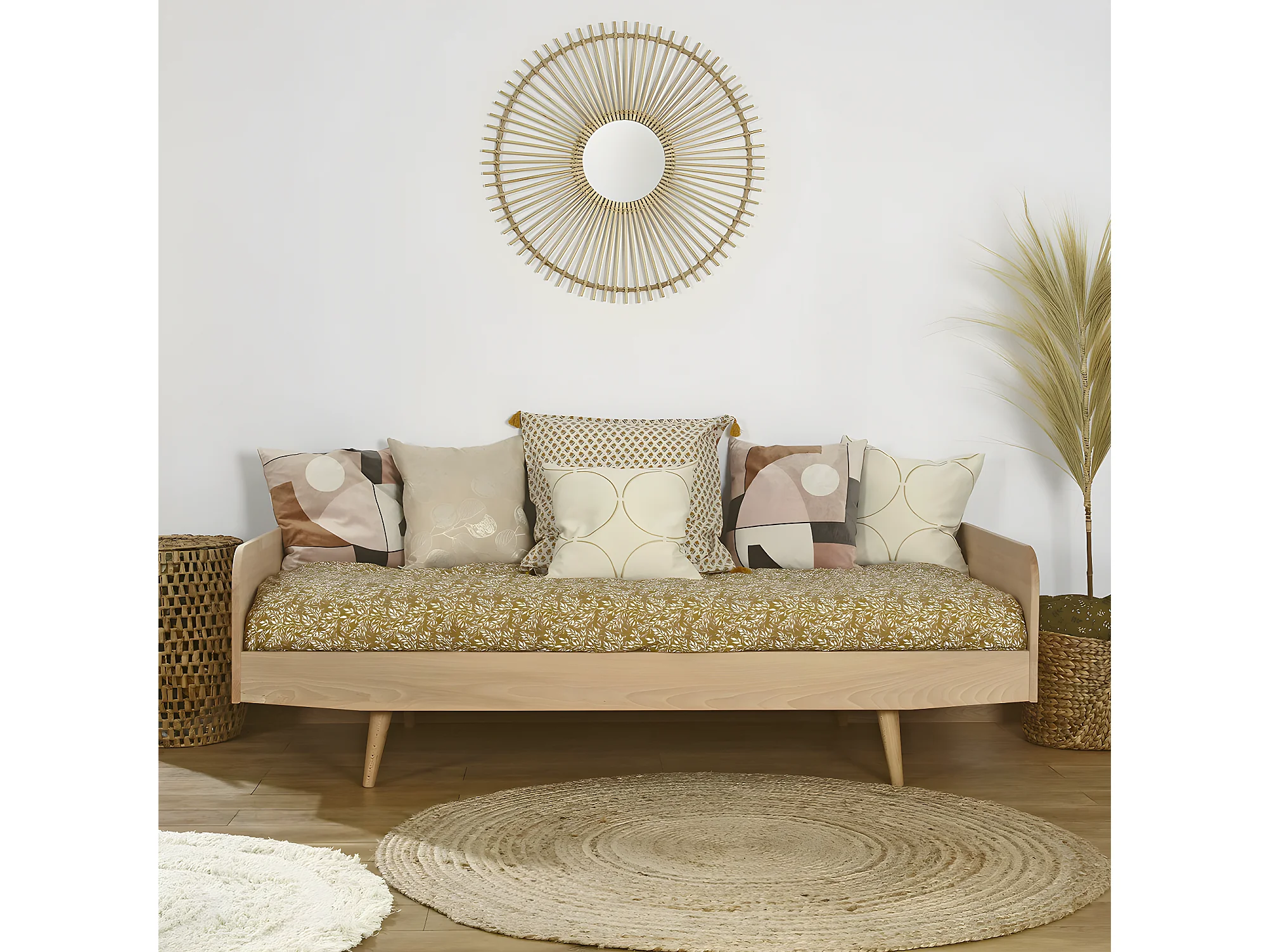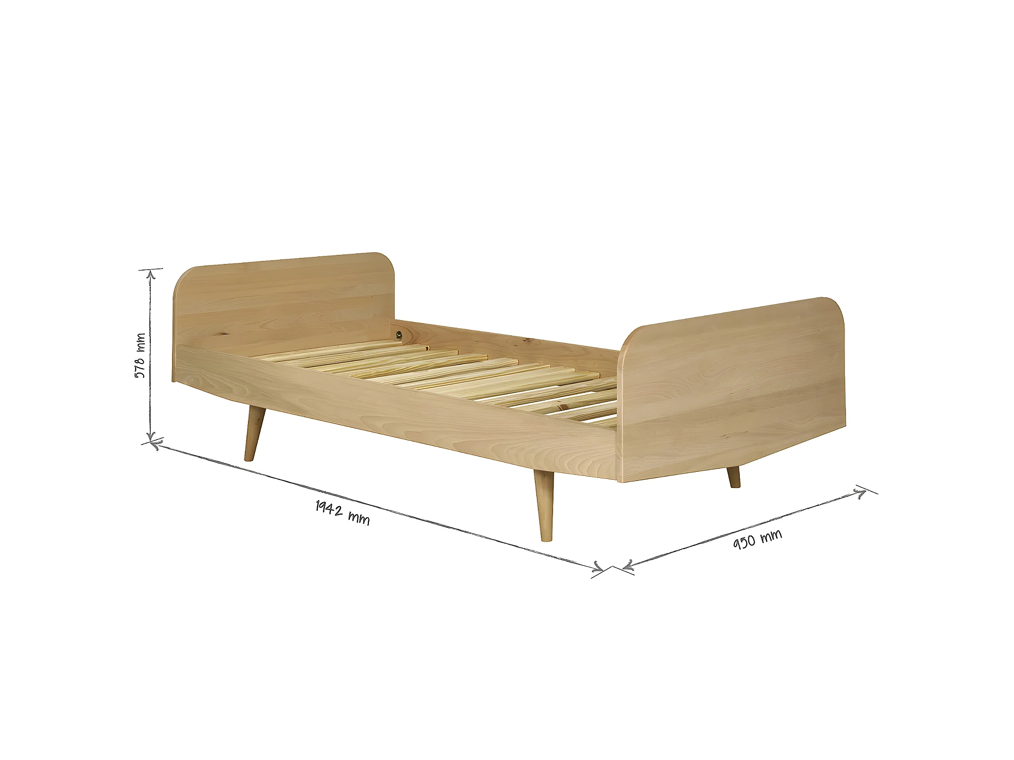 Pack lit avec matelas 90x190 cm bois massif bois naturel BIZO
