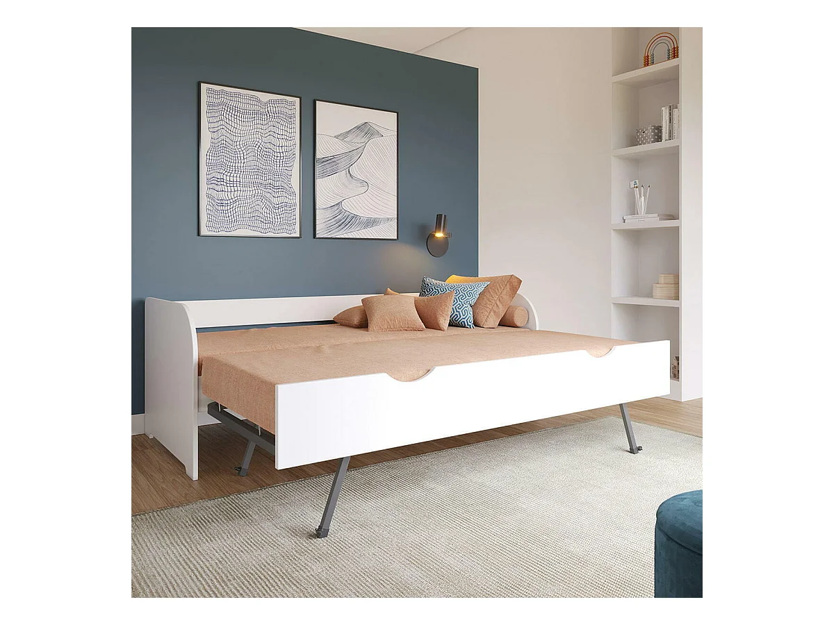 Pack lit banquette Gigogne avec matelas 80x200 cm bois massif blanc EZRA