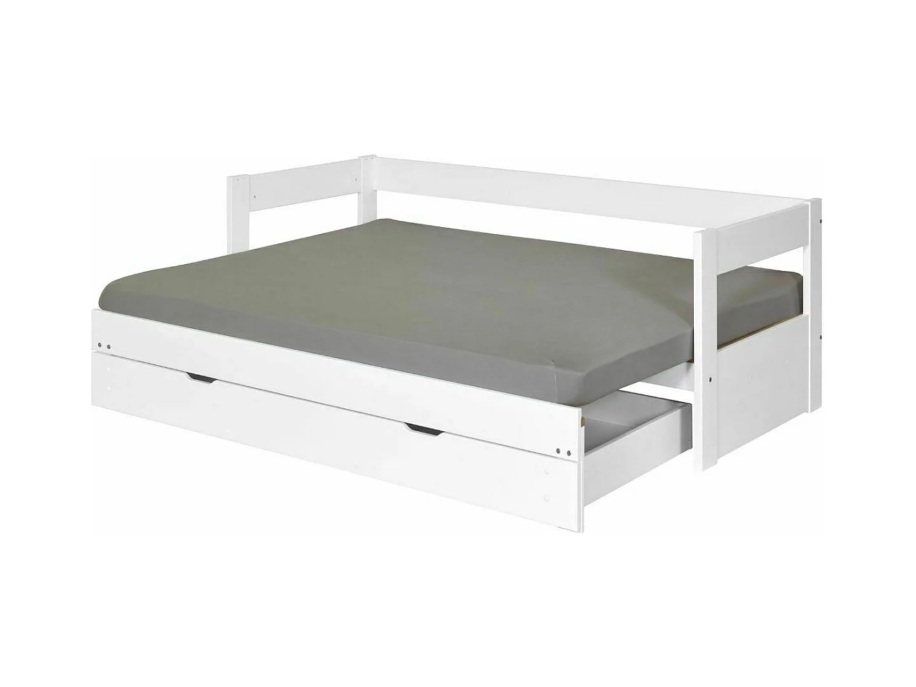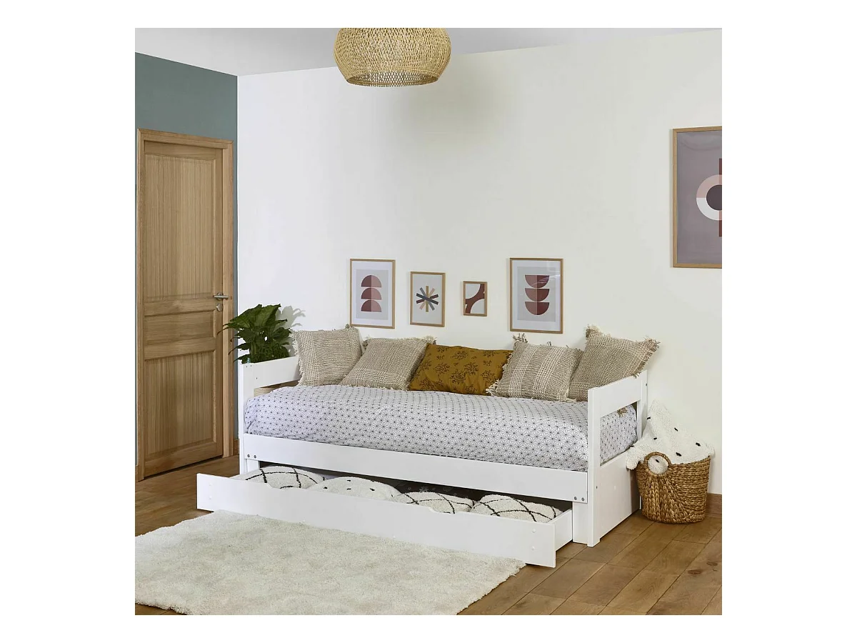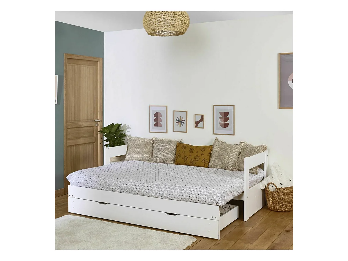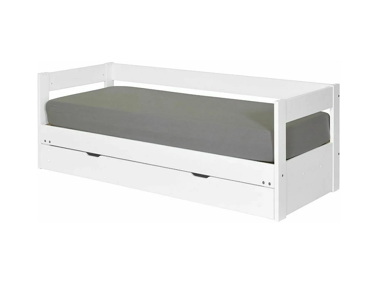 Pack lit banquette gigogne avec tiroir et matelas 80x200 cm bois massif blanc RAVI