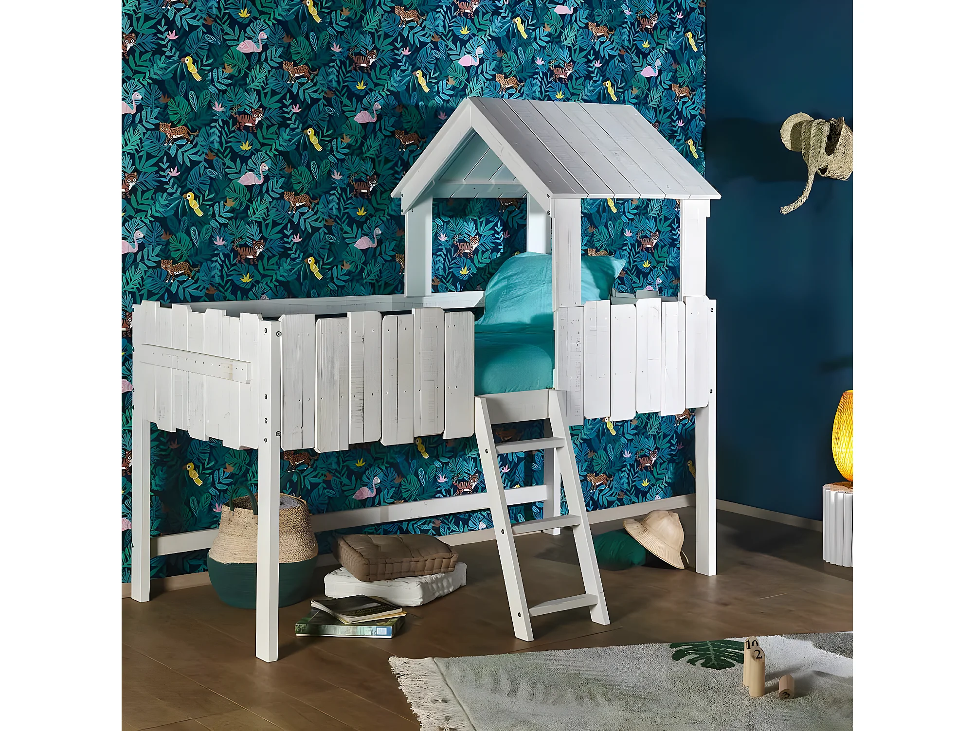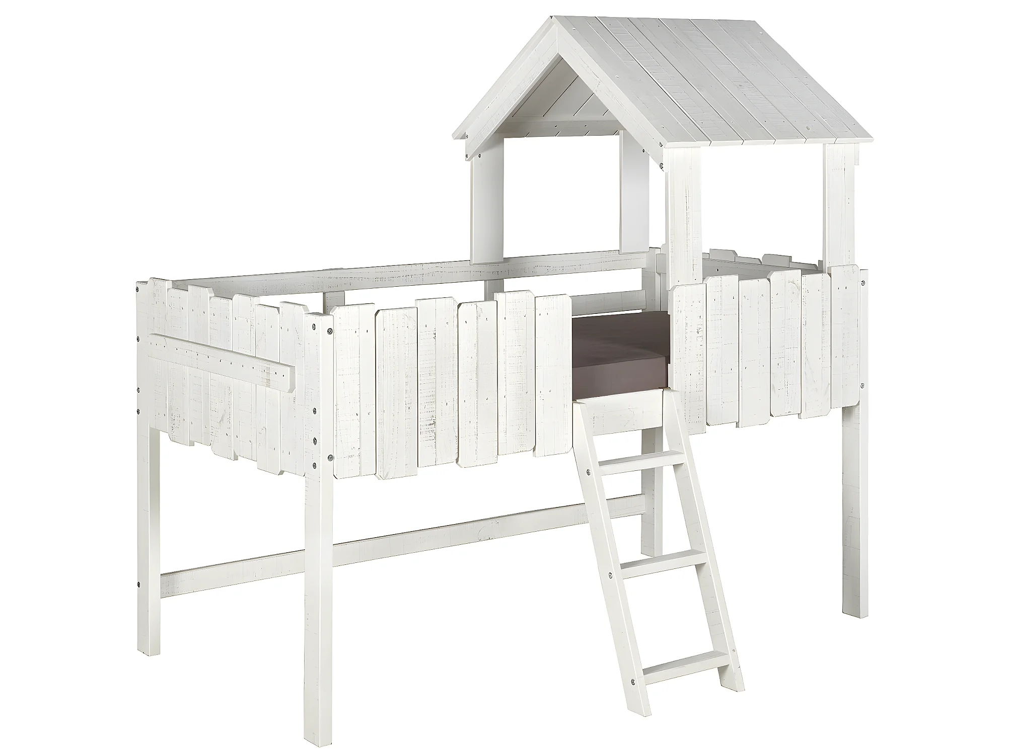 Pack lit cabane mi-hauteur avec matelas 90x190 cm bois massif blanc DONNIE