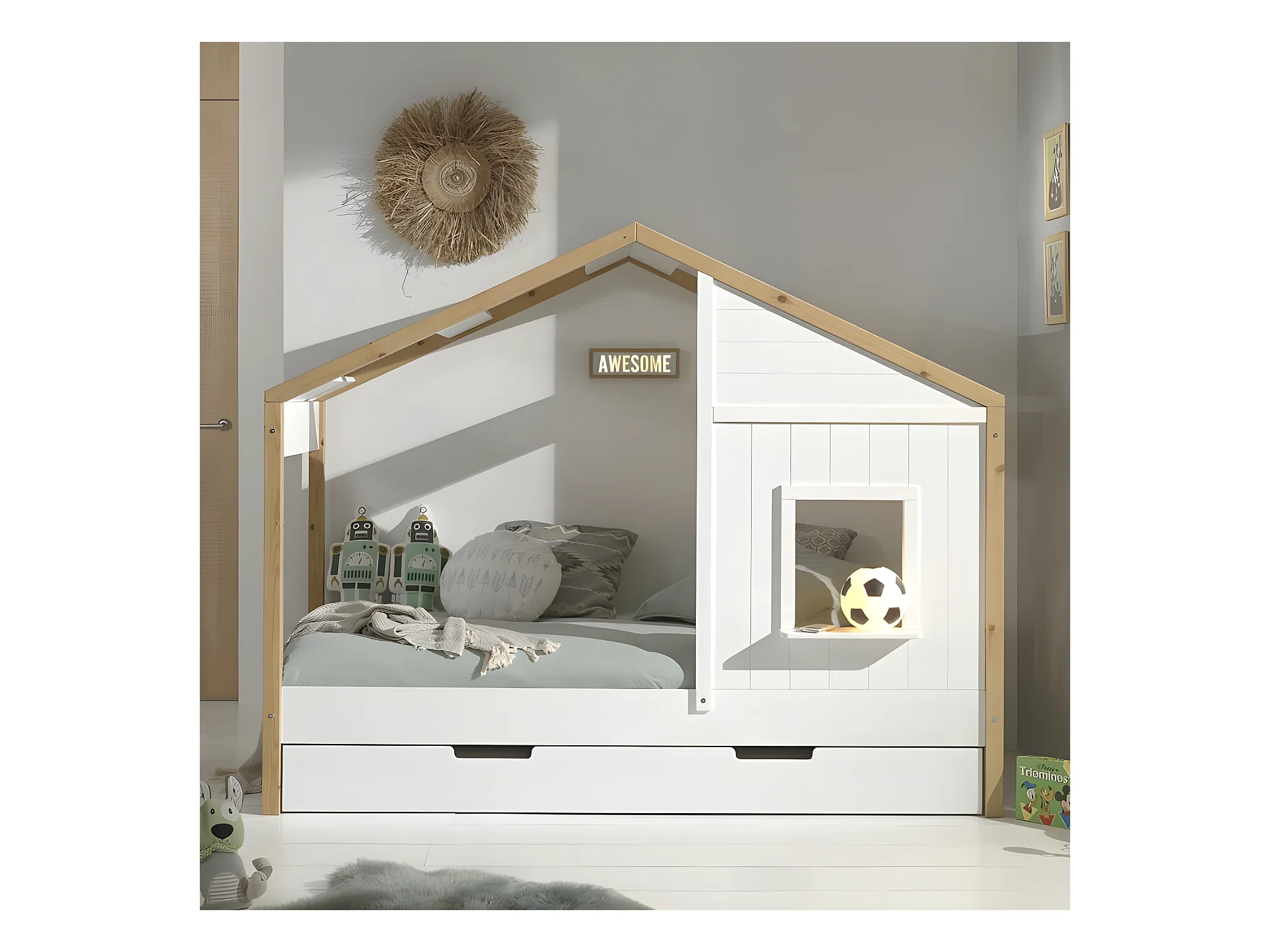 Pack - Lit Cabane & Tiroir "Babs II" 90x200cm Blanc
