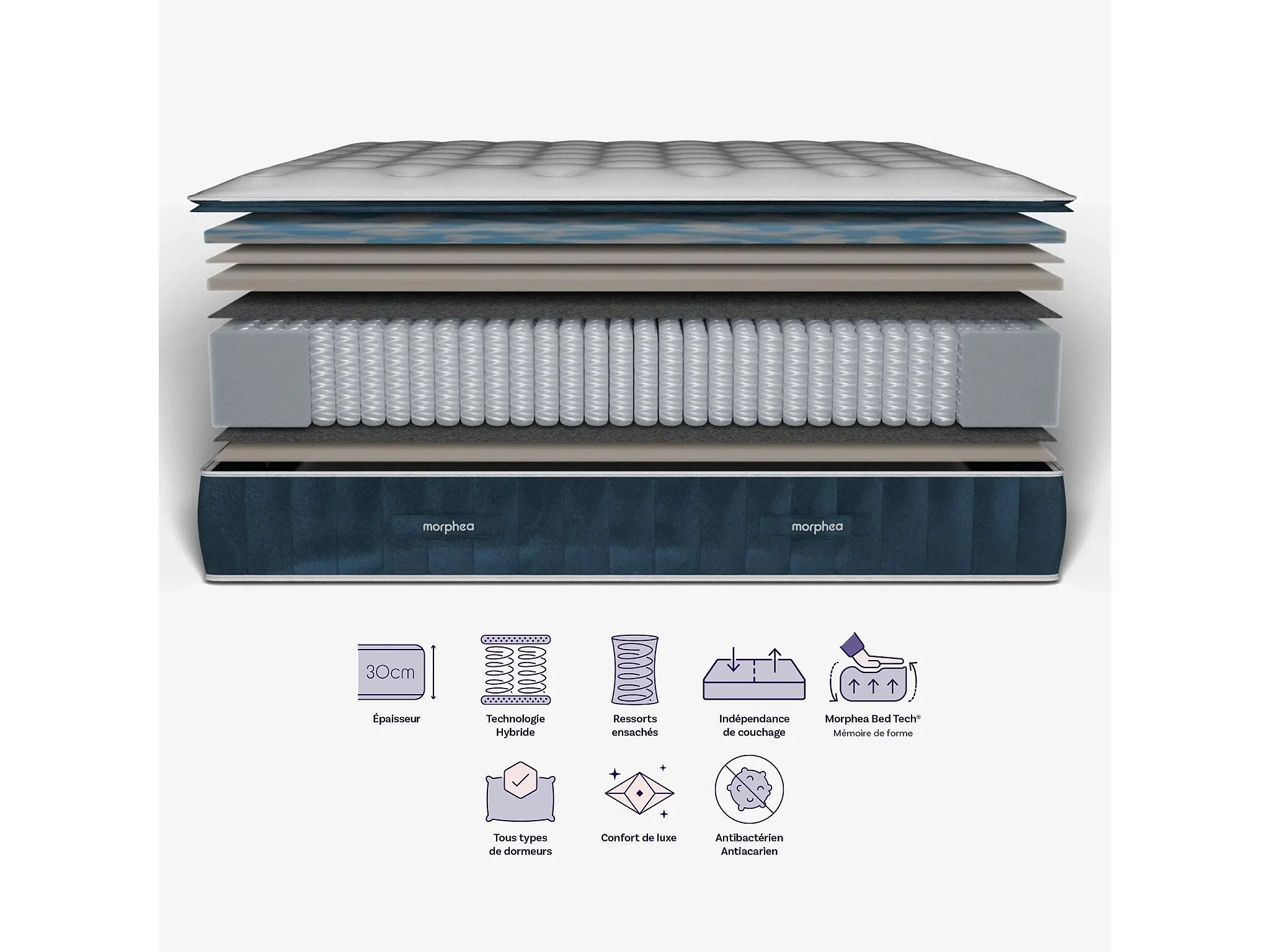 Pack lit coffre et matelas hybride 160x200 épais 30cm