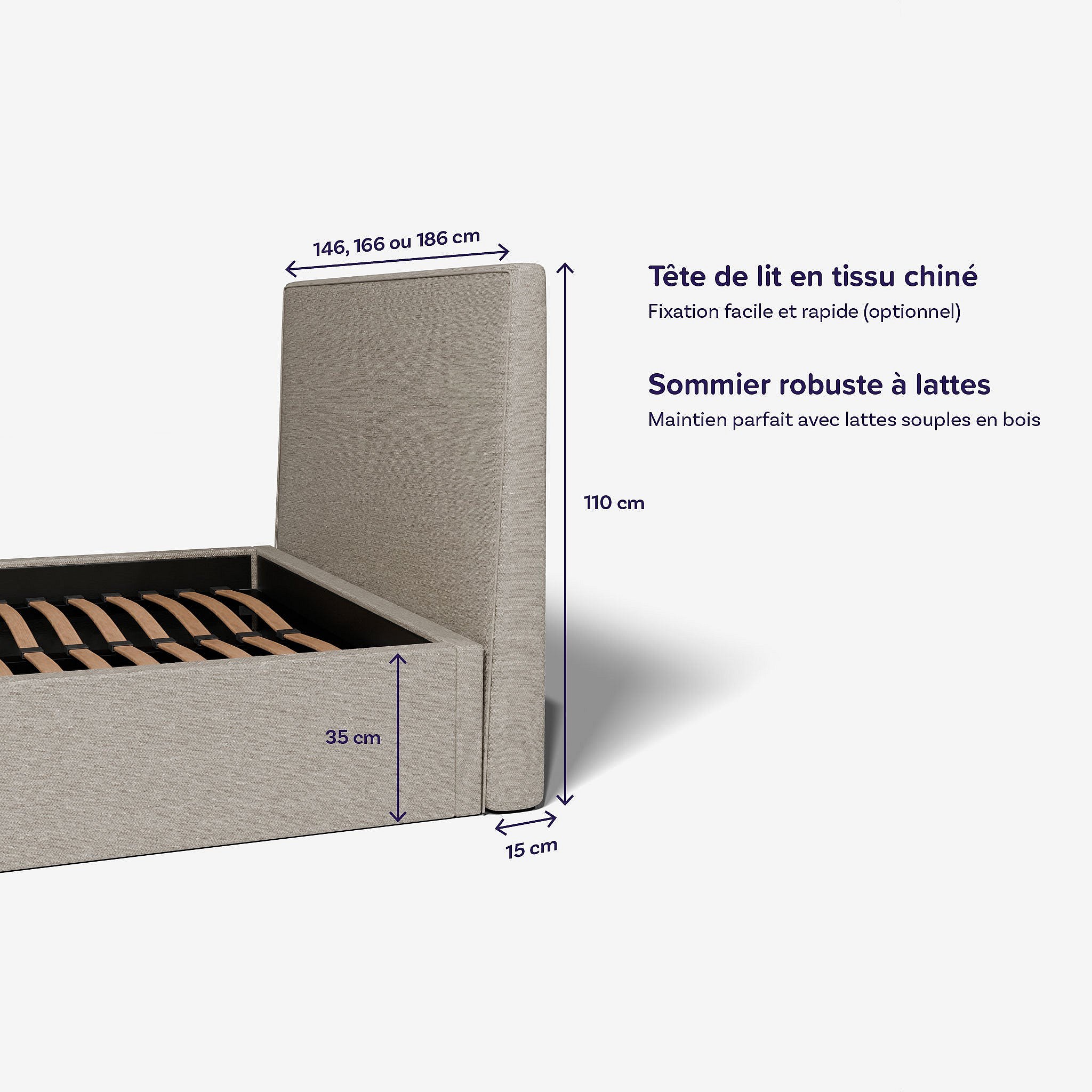 Pack lit coffre et matelas hybride 160x200 épais 30cm