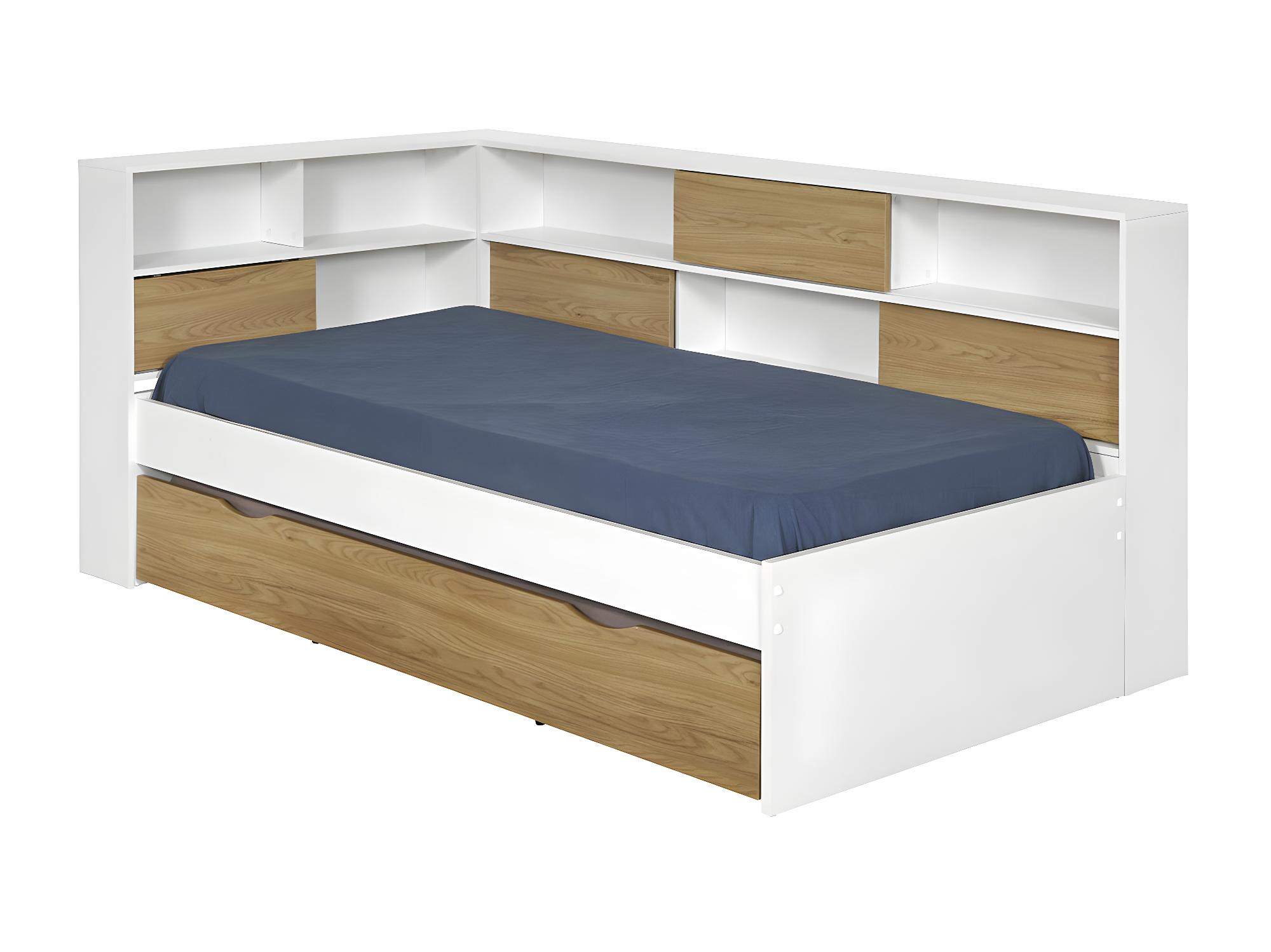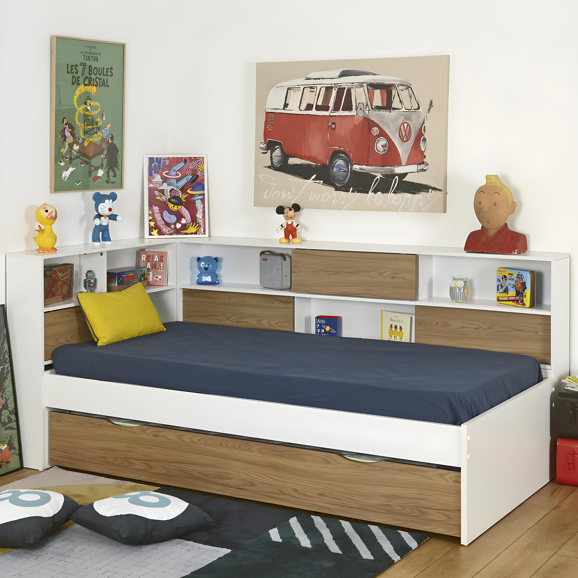 Pack lit cosy avec tiroir et matelas 90x190 cm panneaux de fibres blanc et bois PLAY