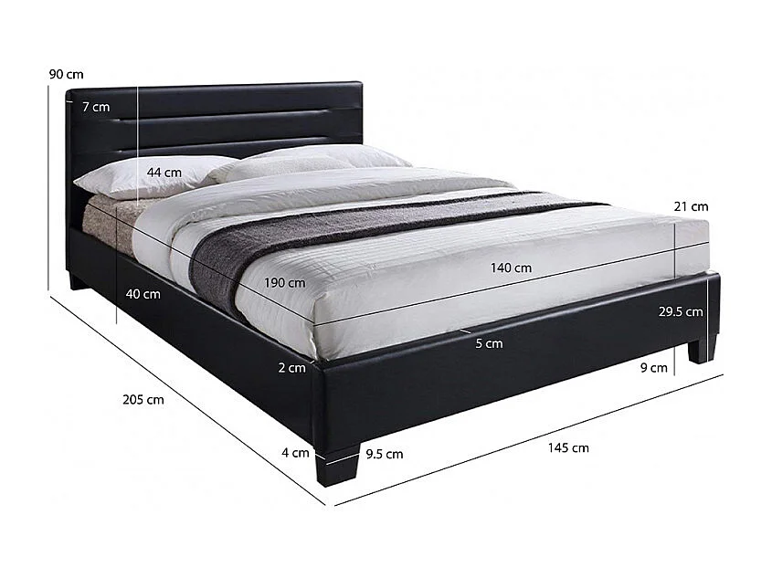Pack lit 140 x 190 cm en simili noir + matelas - BALI