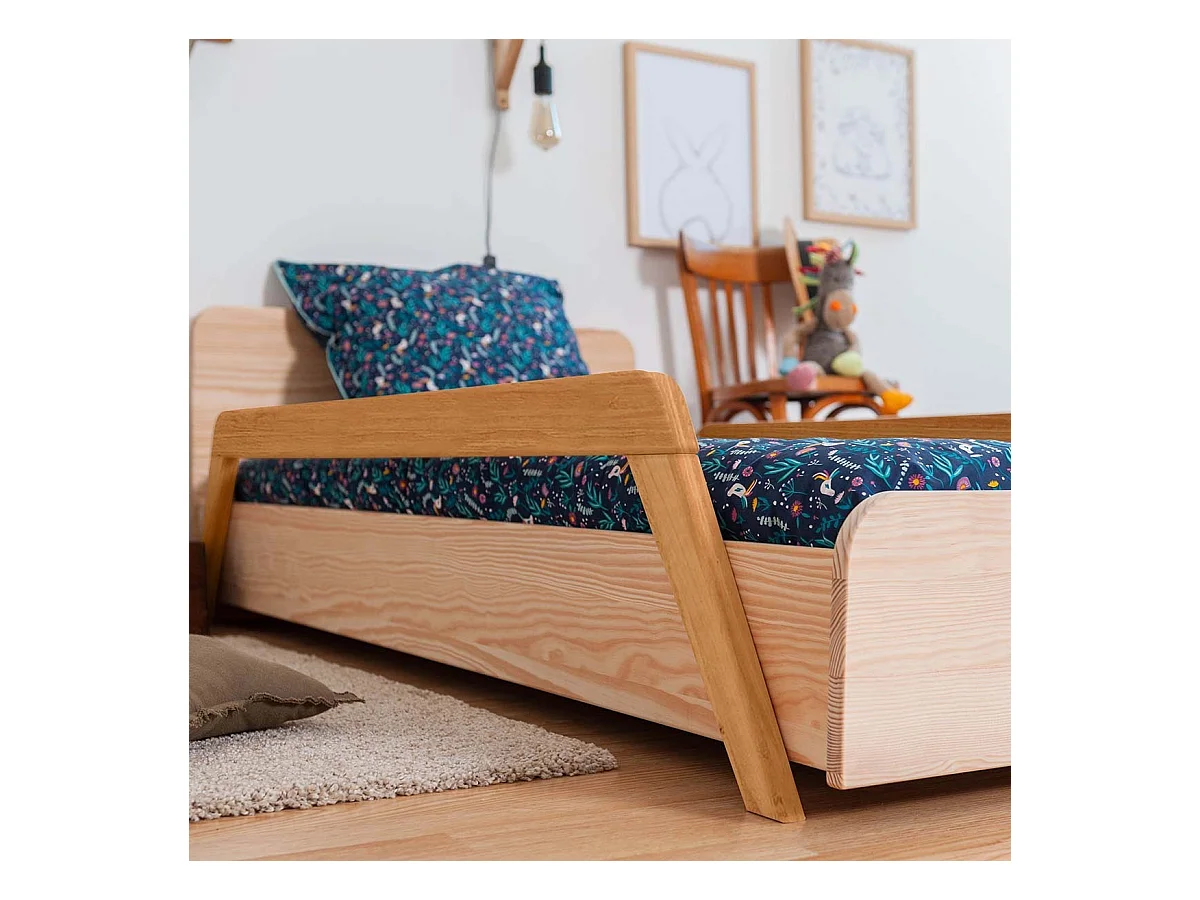 Pack lit enfant évolutif avec barrières et matelas 90x190 cm bois massif bois DIXIA