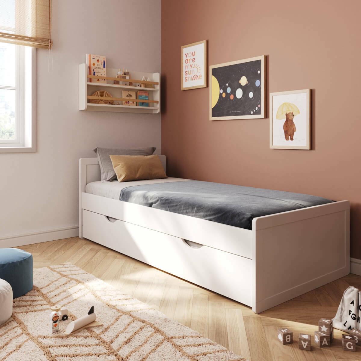 Pack lit enfant gigogne avec matelas 90x190 cm bois massif noisette PETER