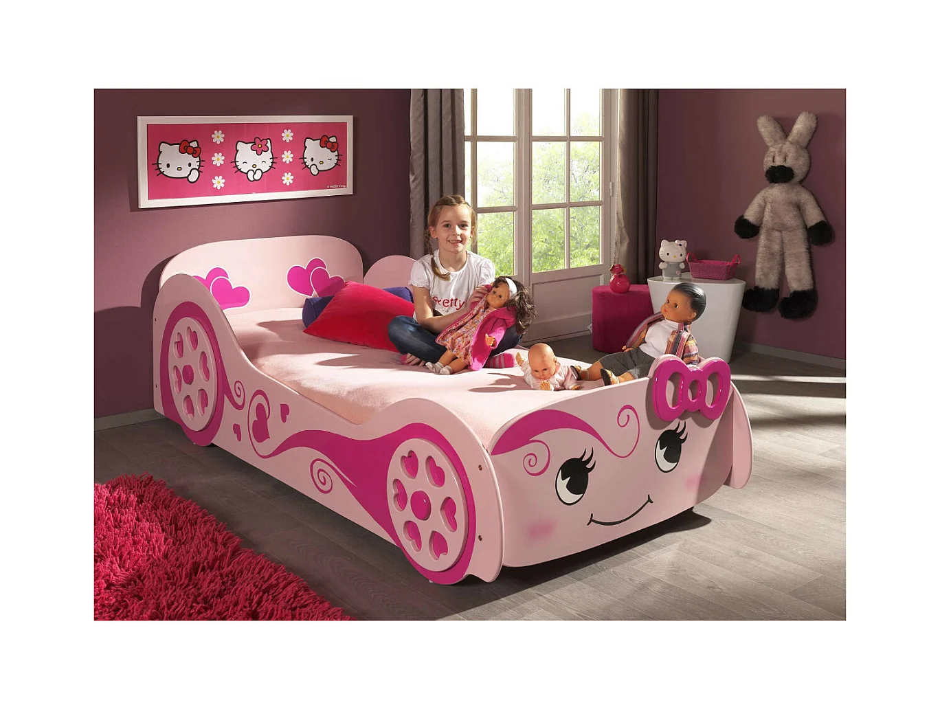 Pack - Lit Enfant & Matelas "Love" 90x200cm Rose