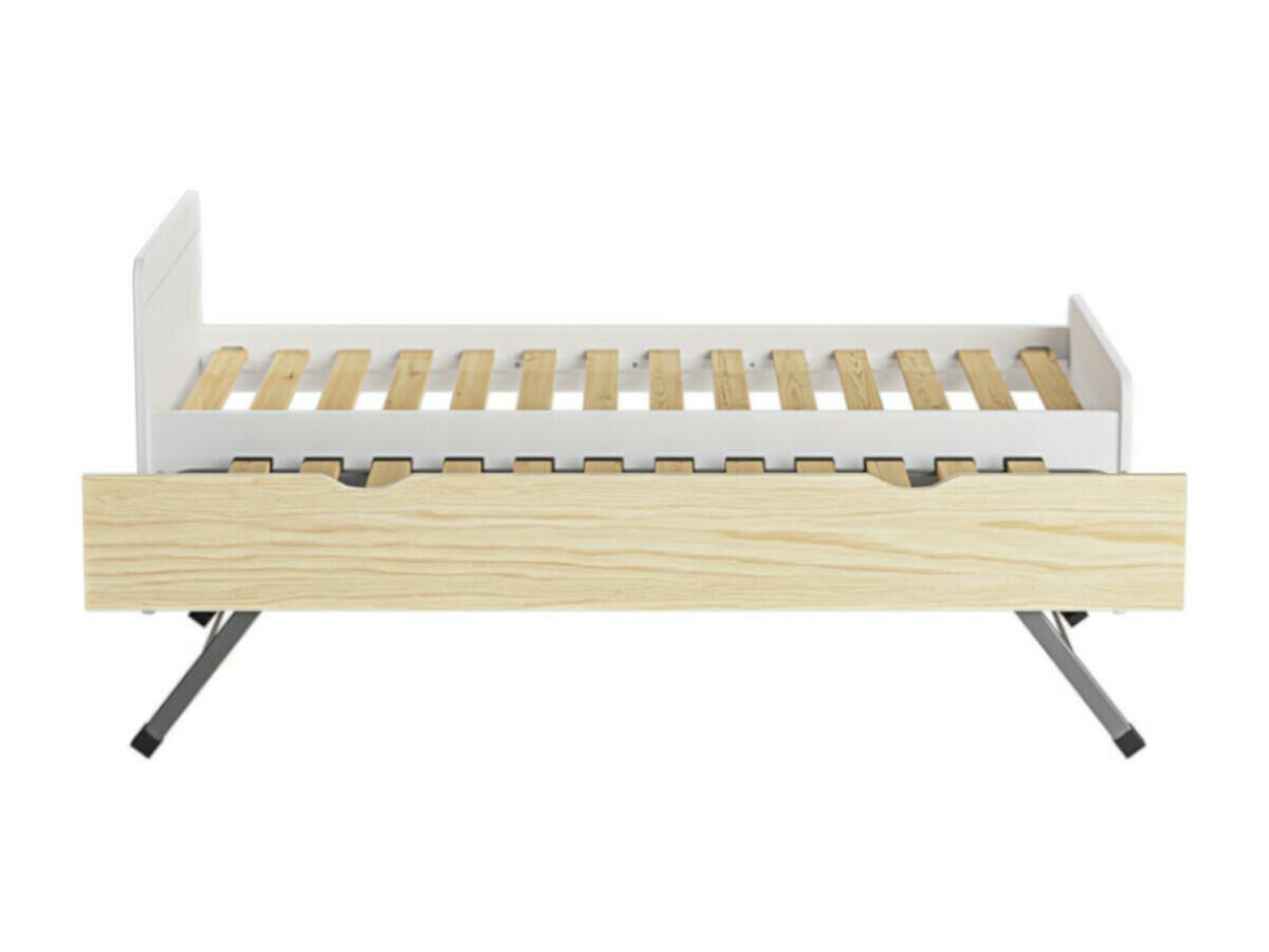 Pack lit gigogne avec matelas 90x190 cm bois massif blanc et bois LILOW