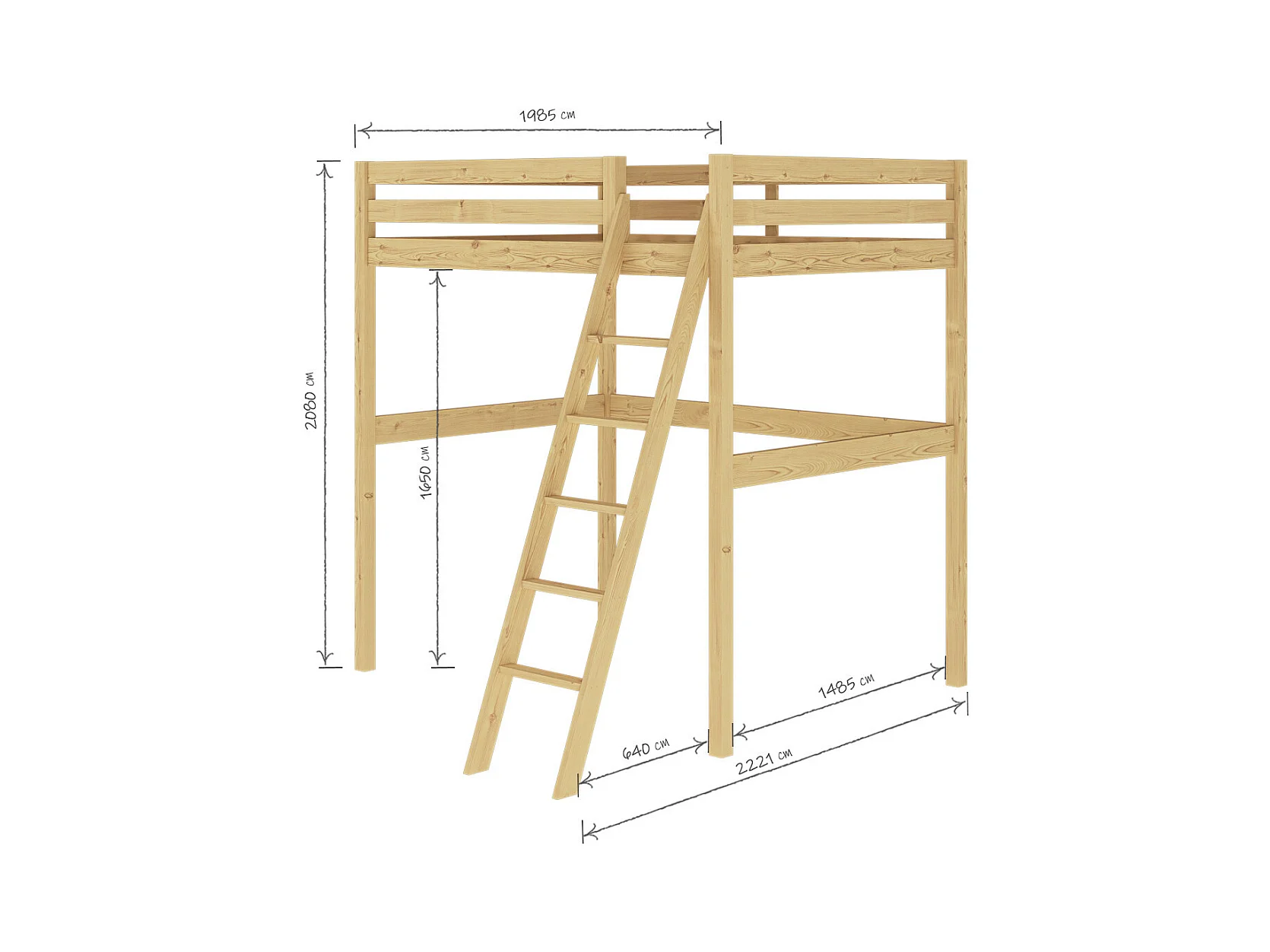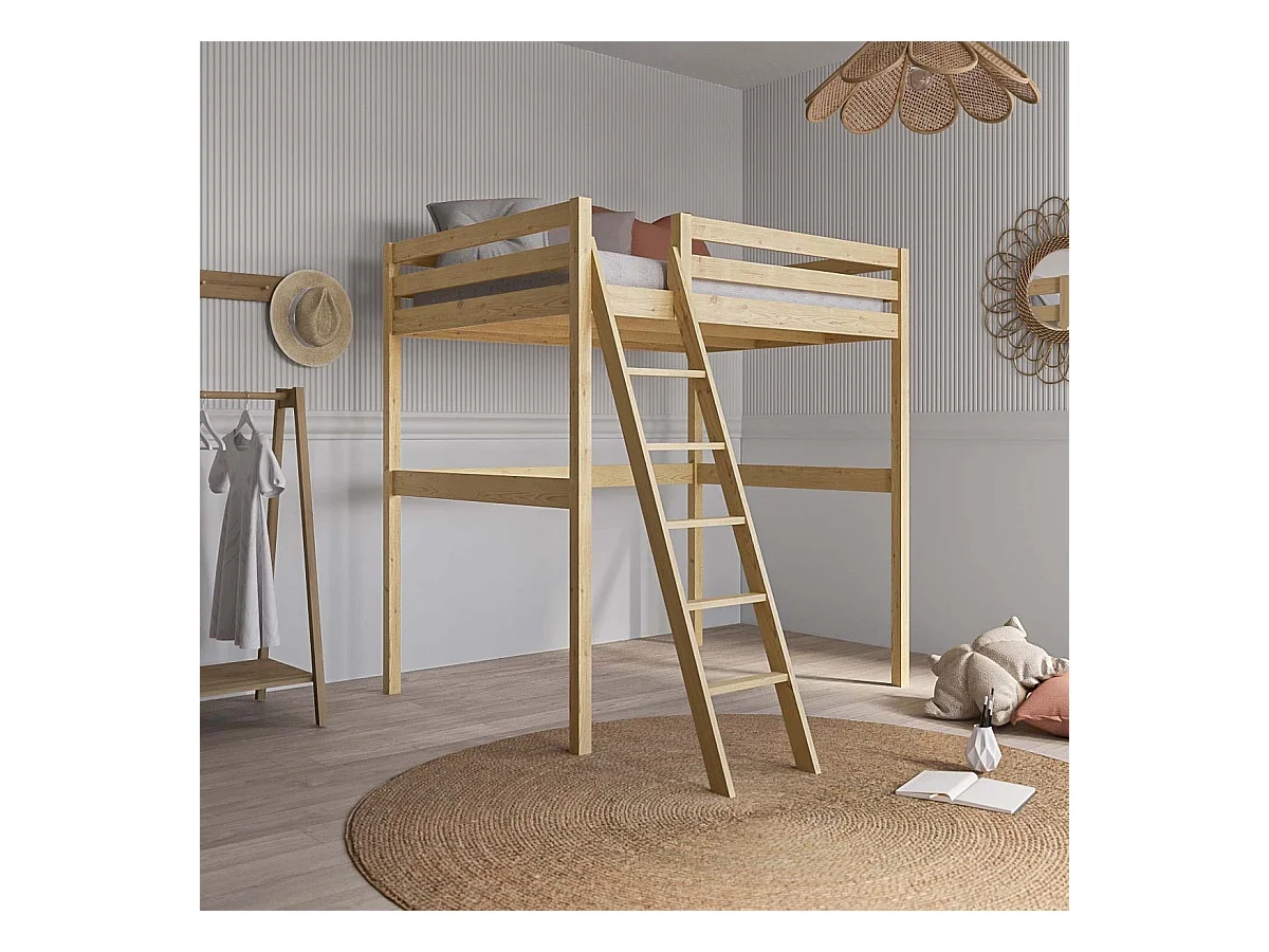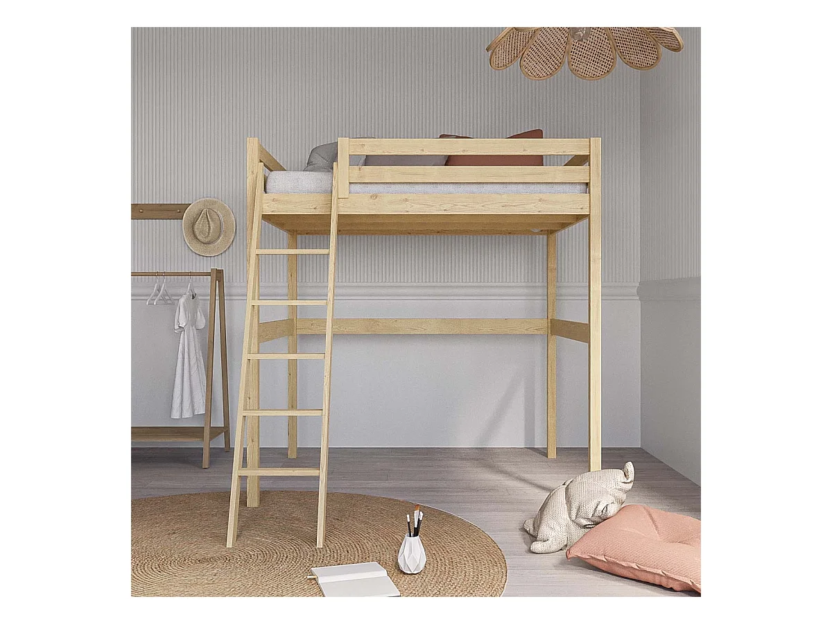 Pack lit mezzanine 2 places avec matelas 140x190 cm bois massif bois AARON