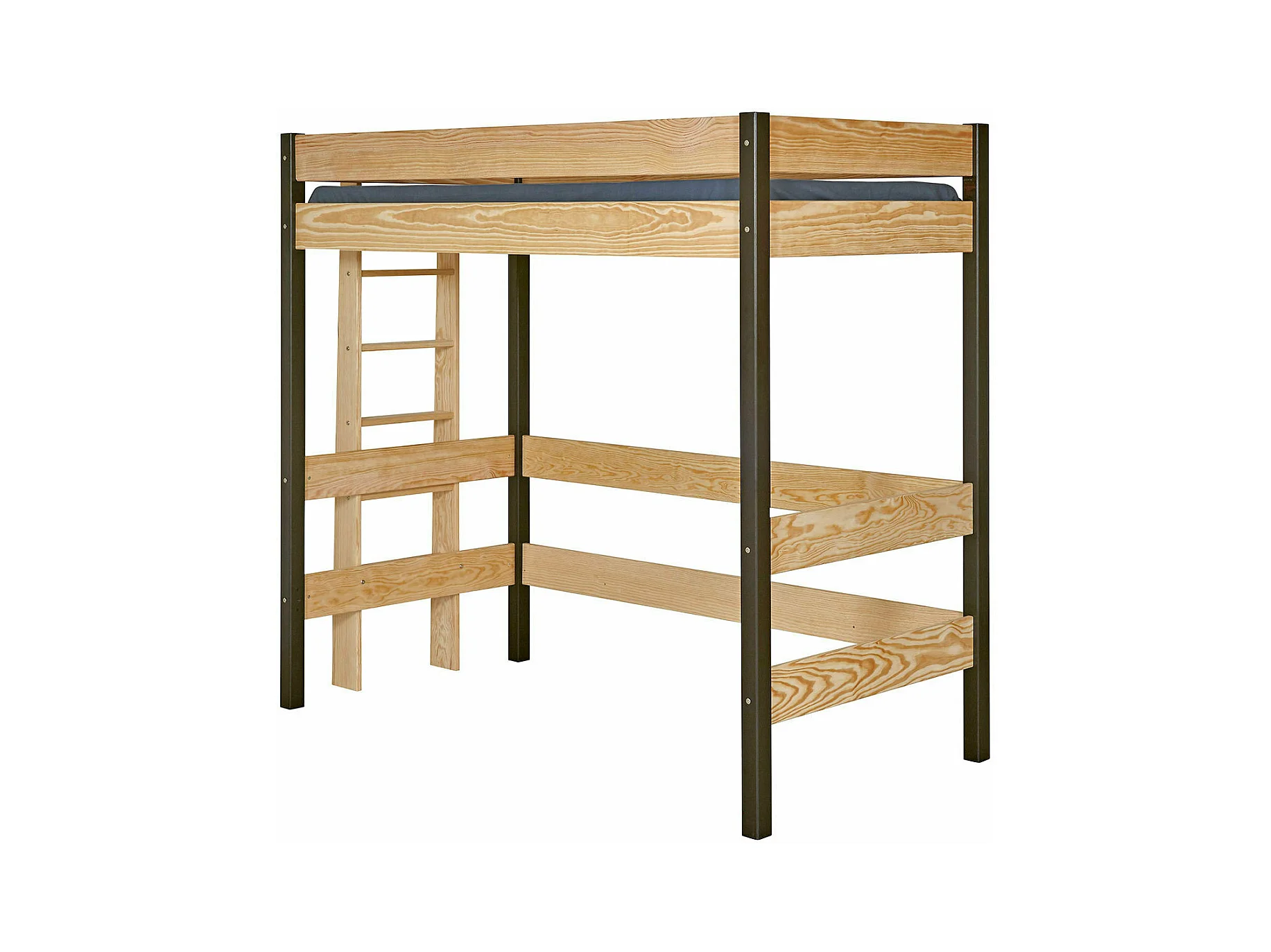 Pack lit mezzanine avec matelas 90x190 cm bois massif noir et bois TINO