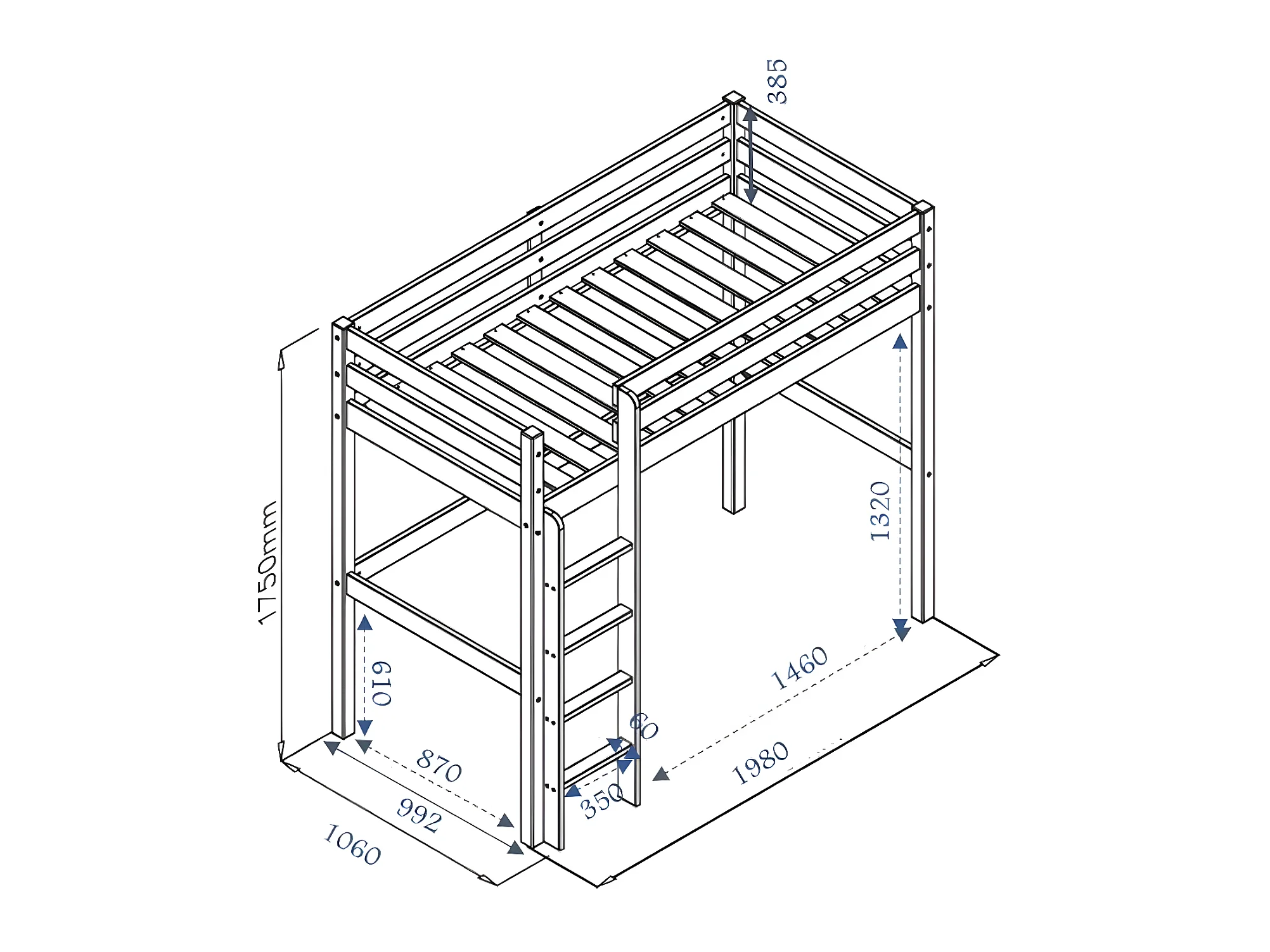 Pack lit mezzanine avec matelas 90x190 cm bois massif bois naturel AARON