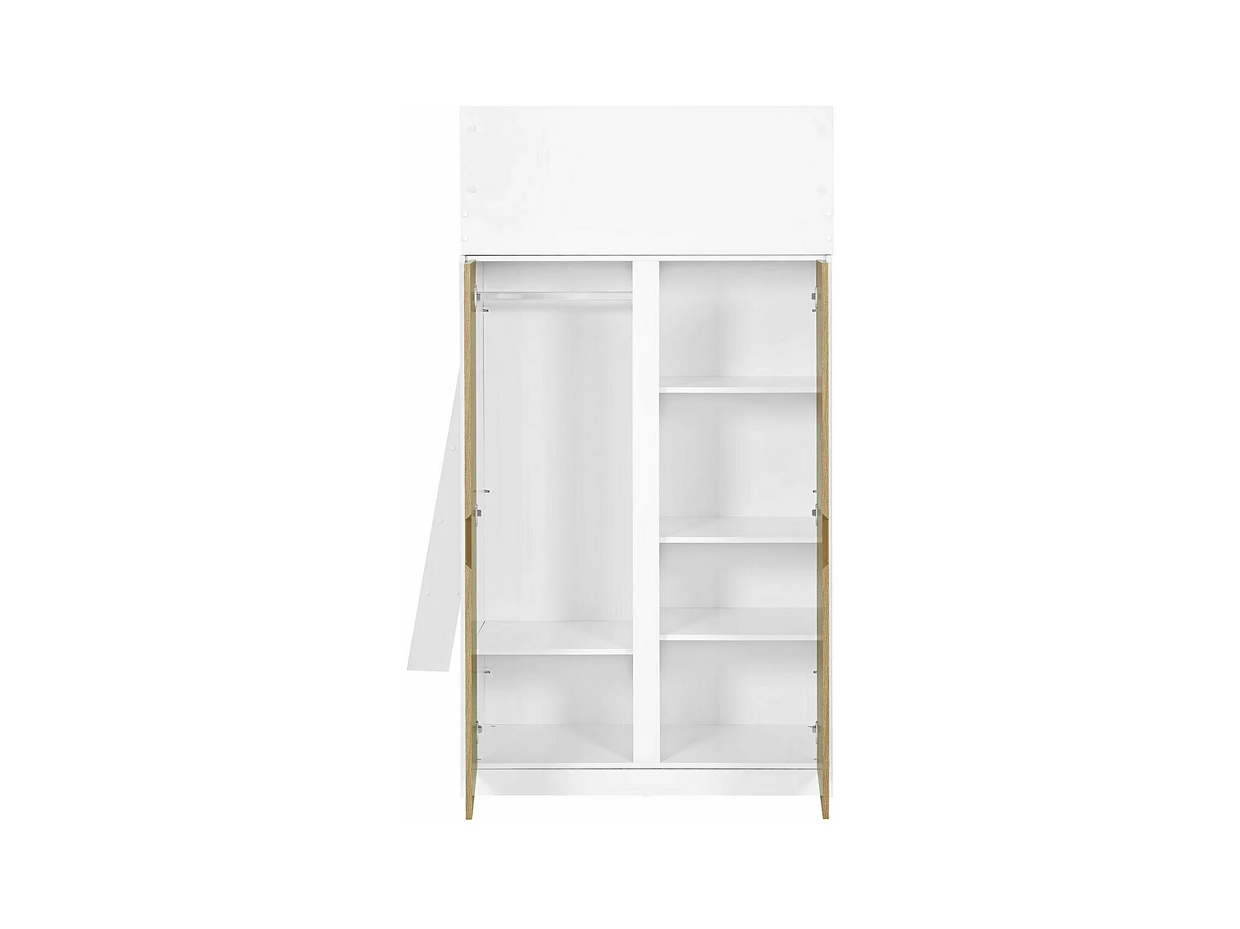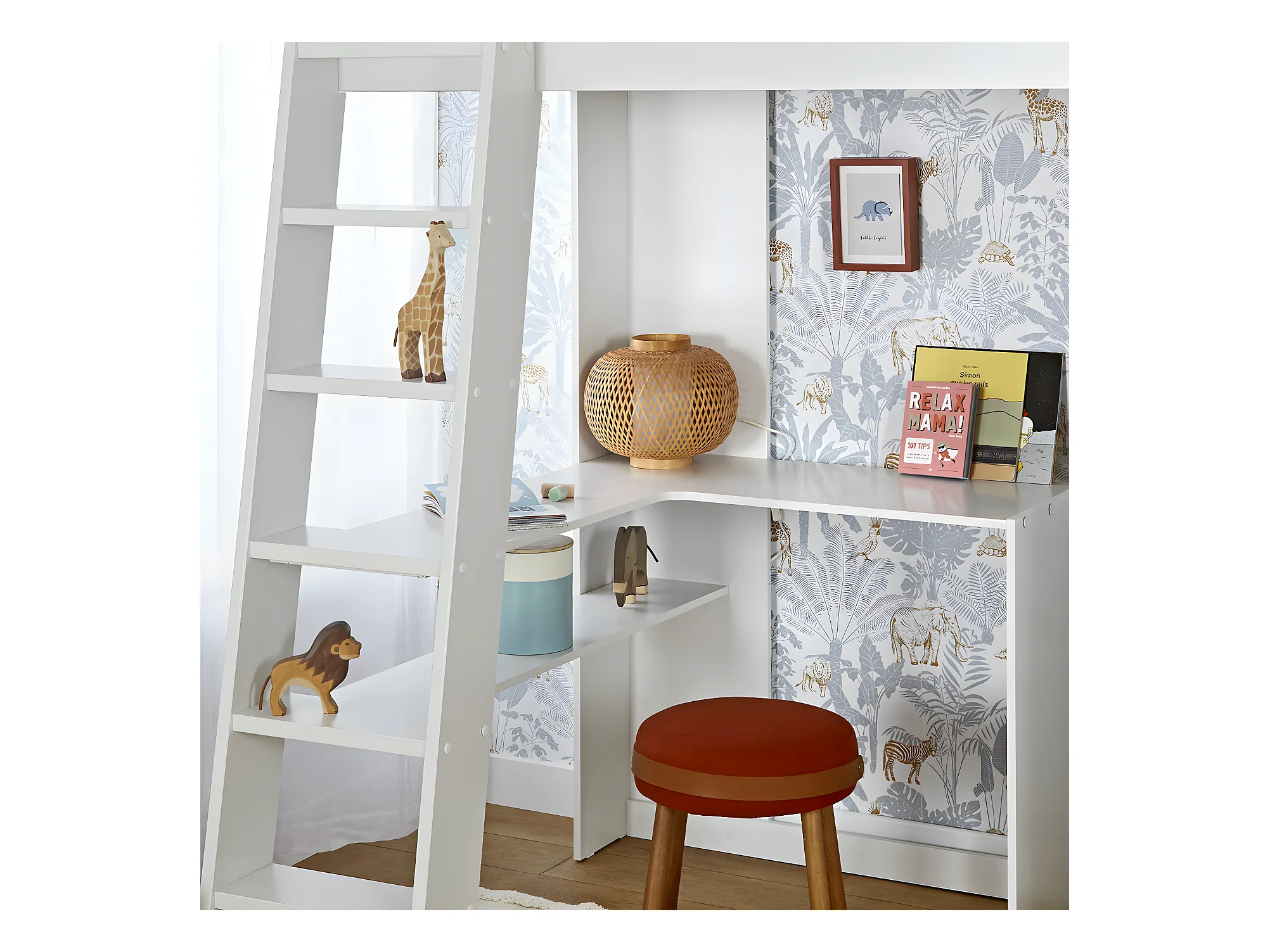 Pack lit mezzanine avec matelas 90x190 cm panneaux de fibres blanc et bois MEMPHIS
