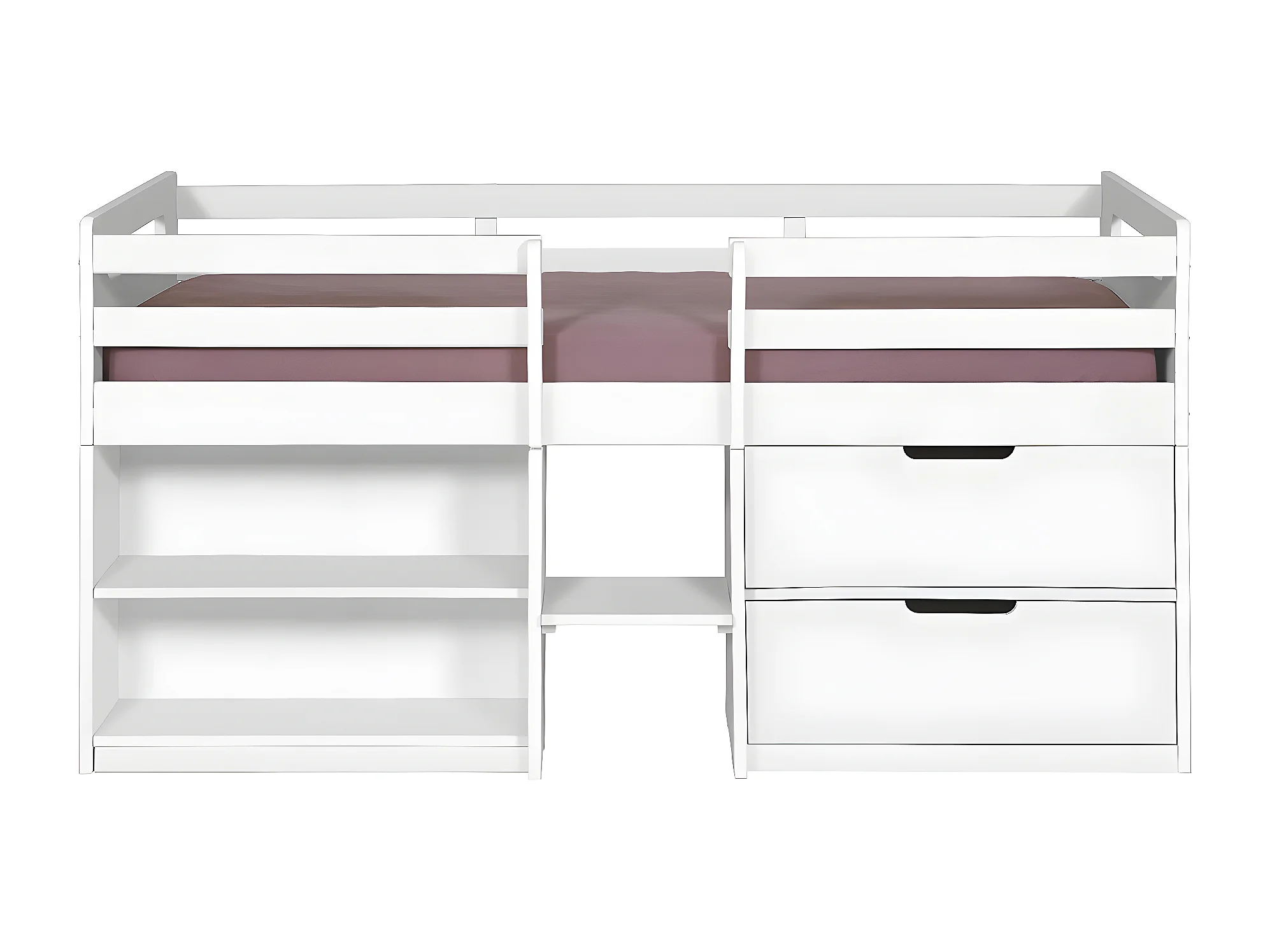 Lit mi-hauteur avec matelas 90x190 cm bois massif blanc HOBY