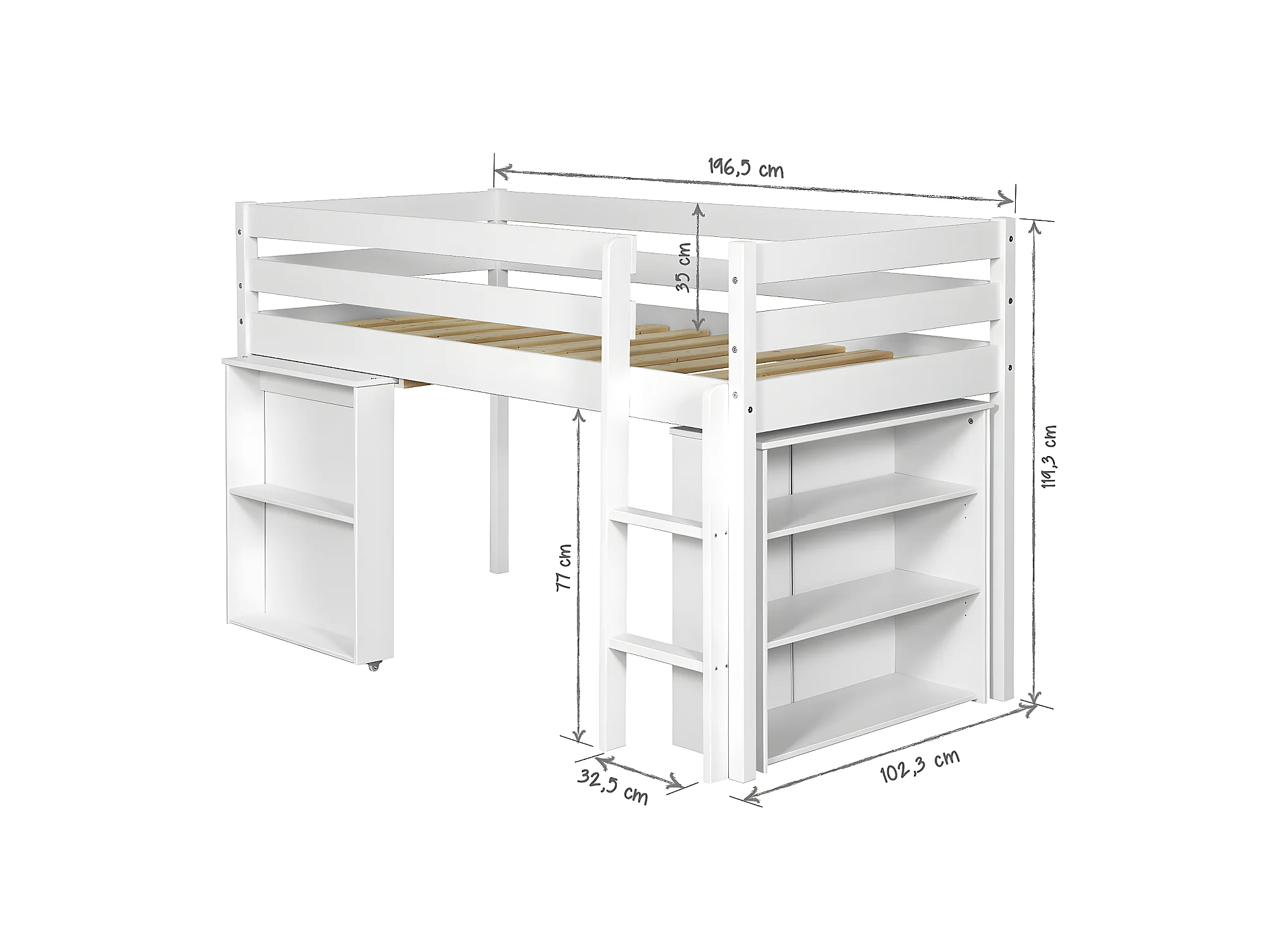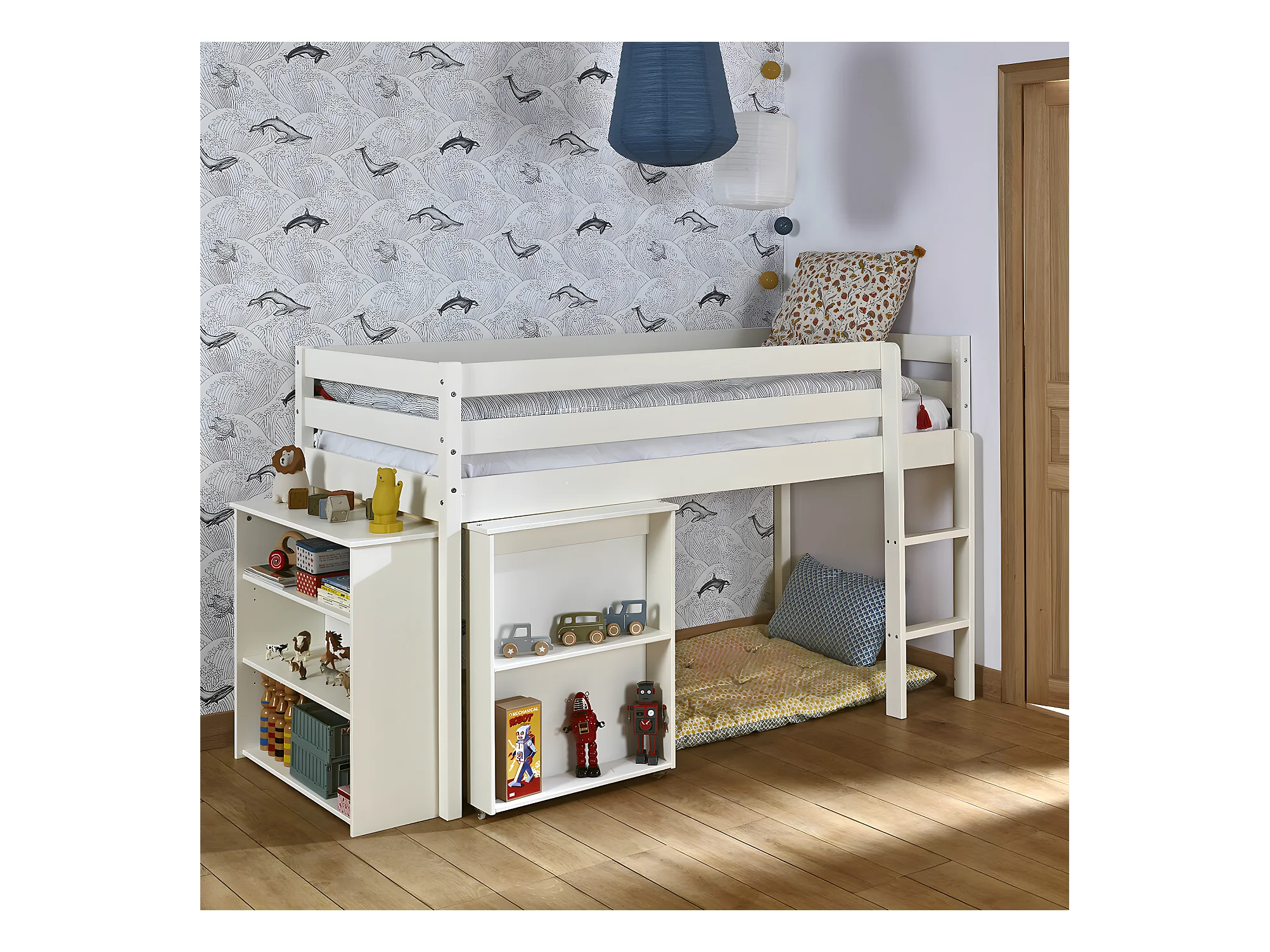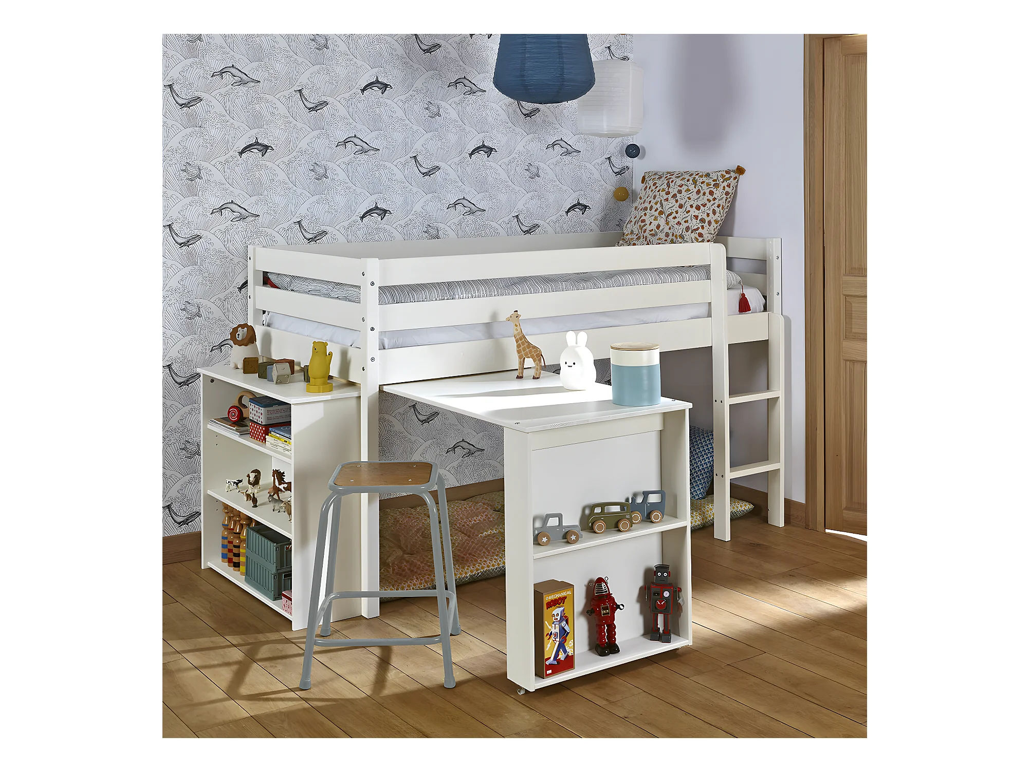 Lit enfant combiné avec matelas 90x190 cm bois massif blanc DAVON