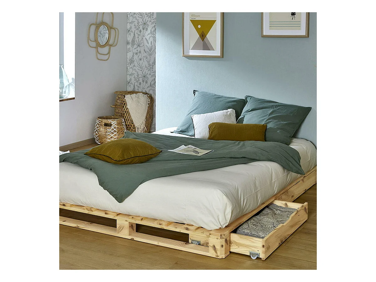 Pack lit palette avec matelas 140x200 cm bois massif bois naturel CEMBRO