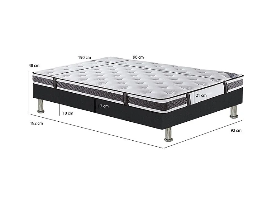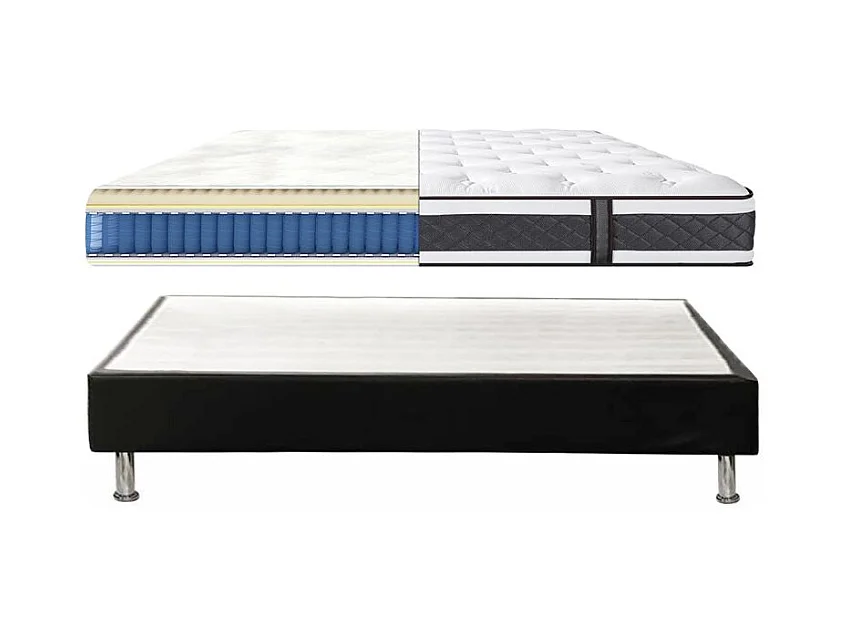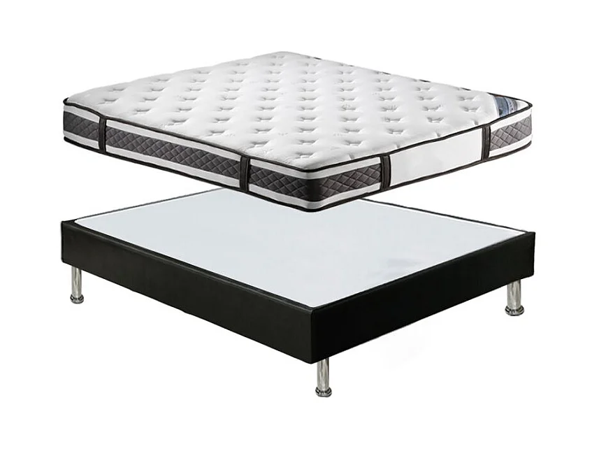 Pack lit 90 x 190 cm sommier simili noir + matelas - REMIMOS