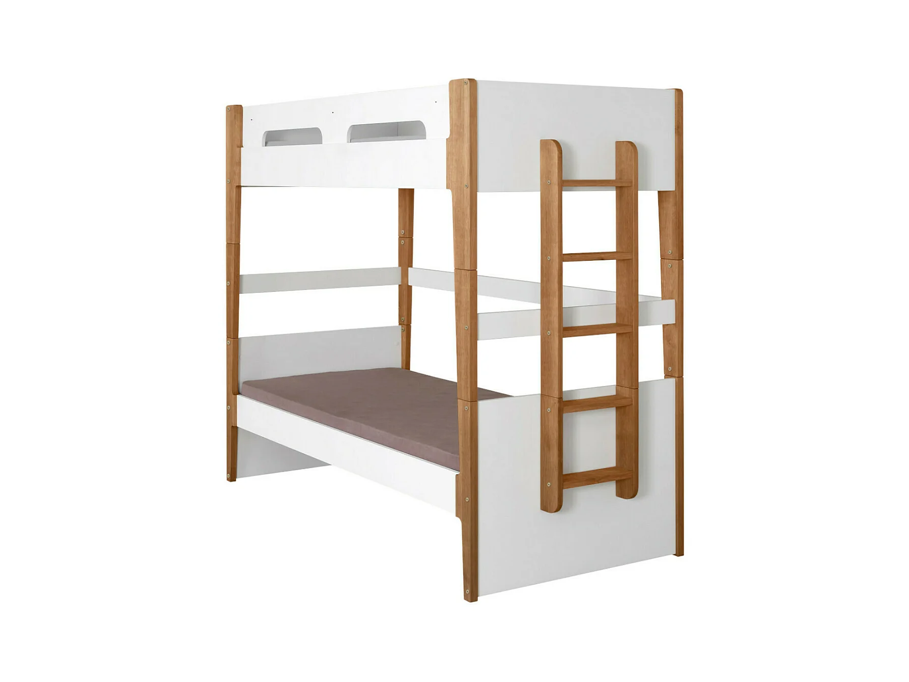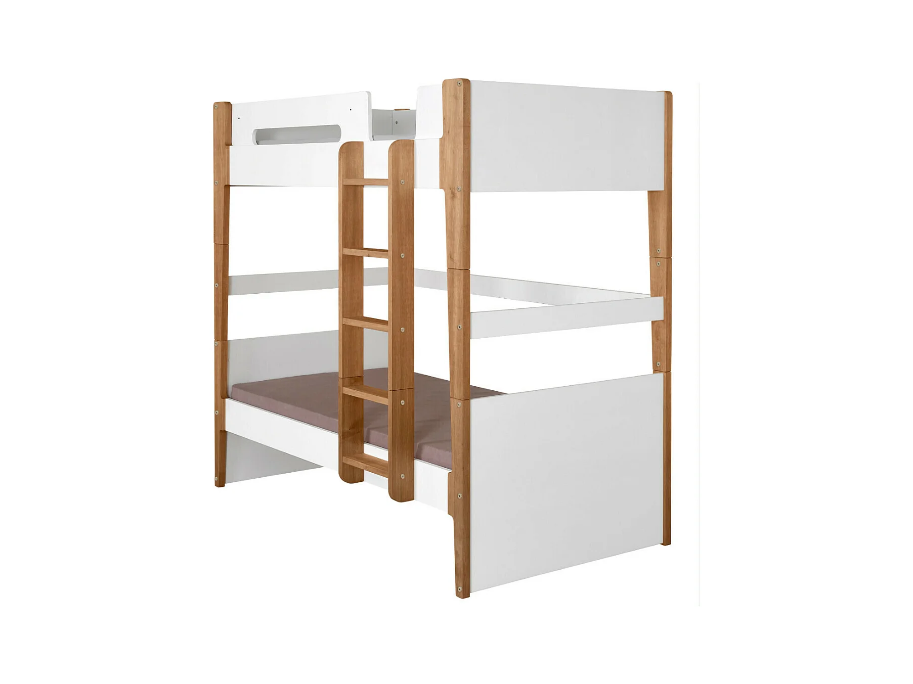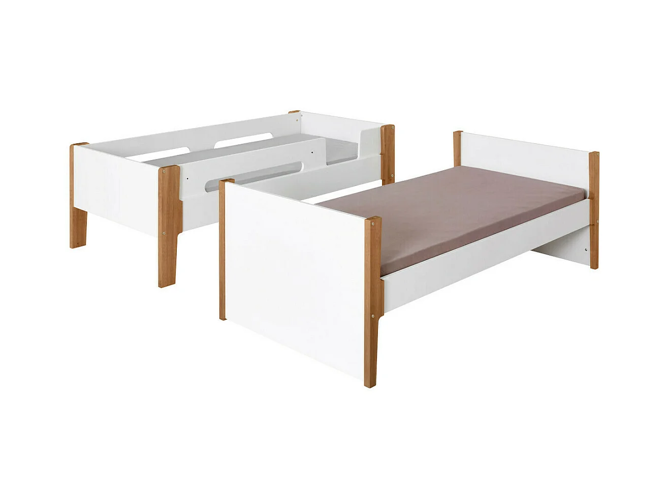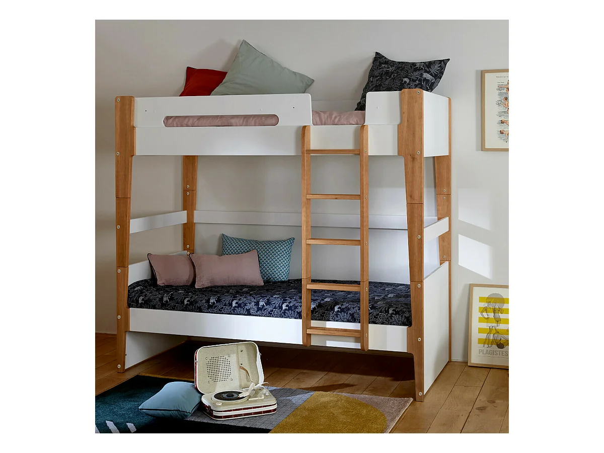 Pack lit superposé avec matelas 90x190 cm bois massif blanc et bois ROMY