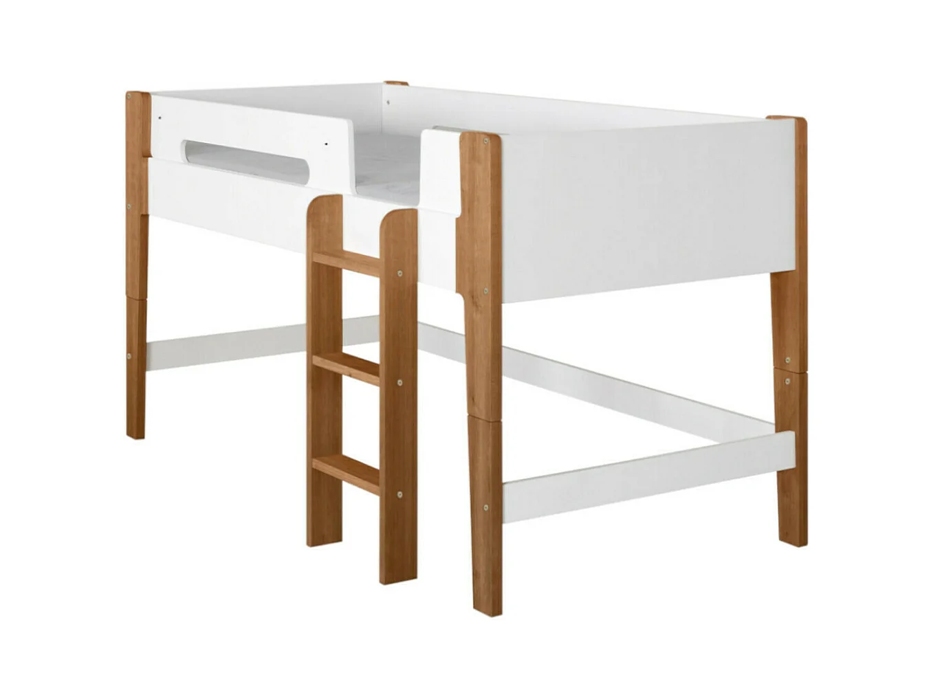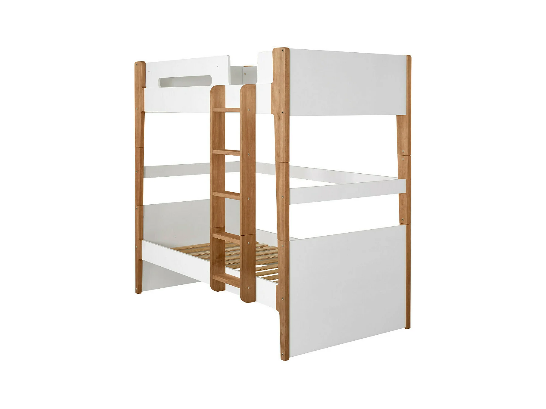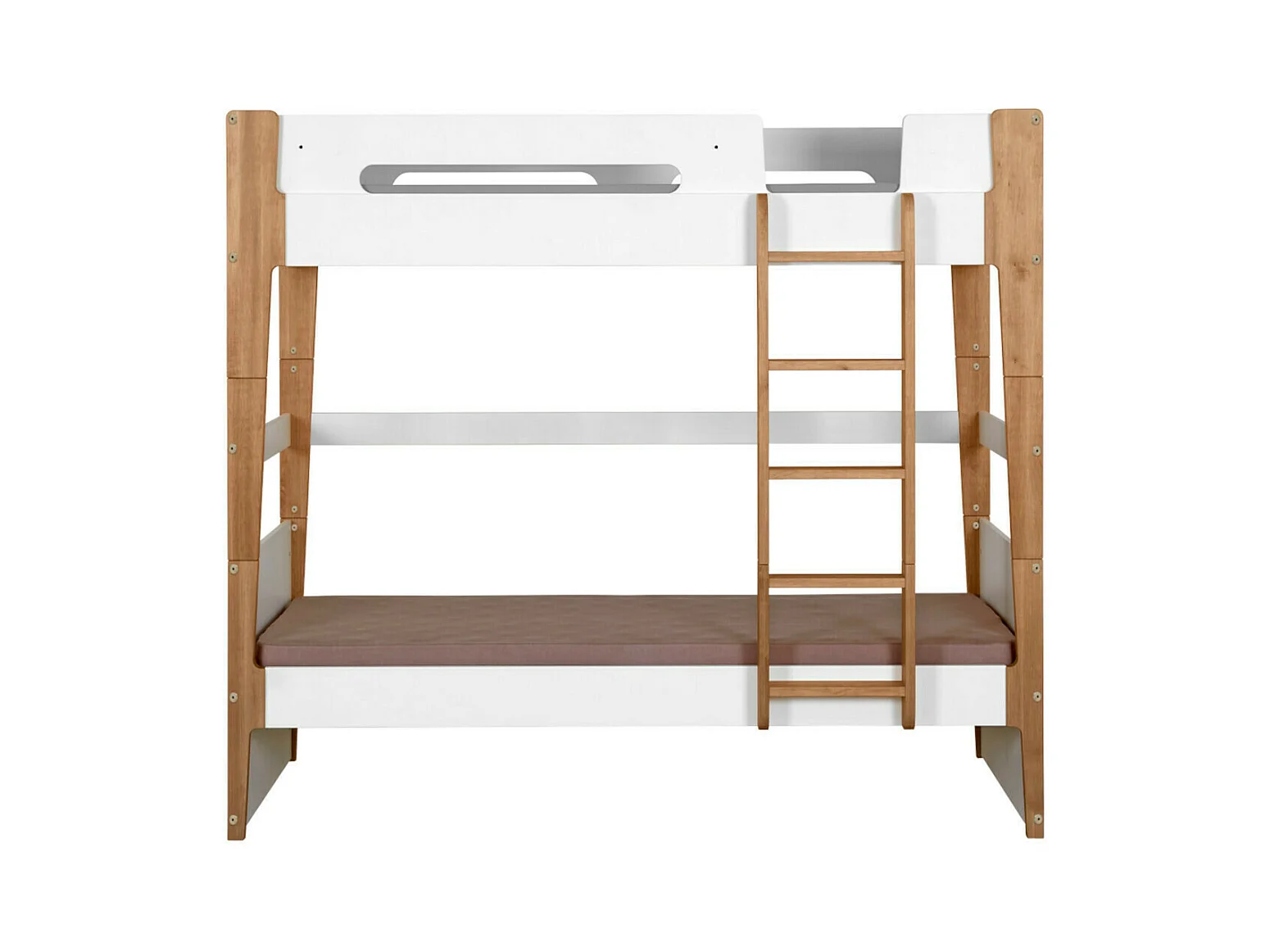 Pack lit superposé avec matelas 90x190 cm bois massif blanc et bois ROMY