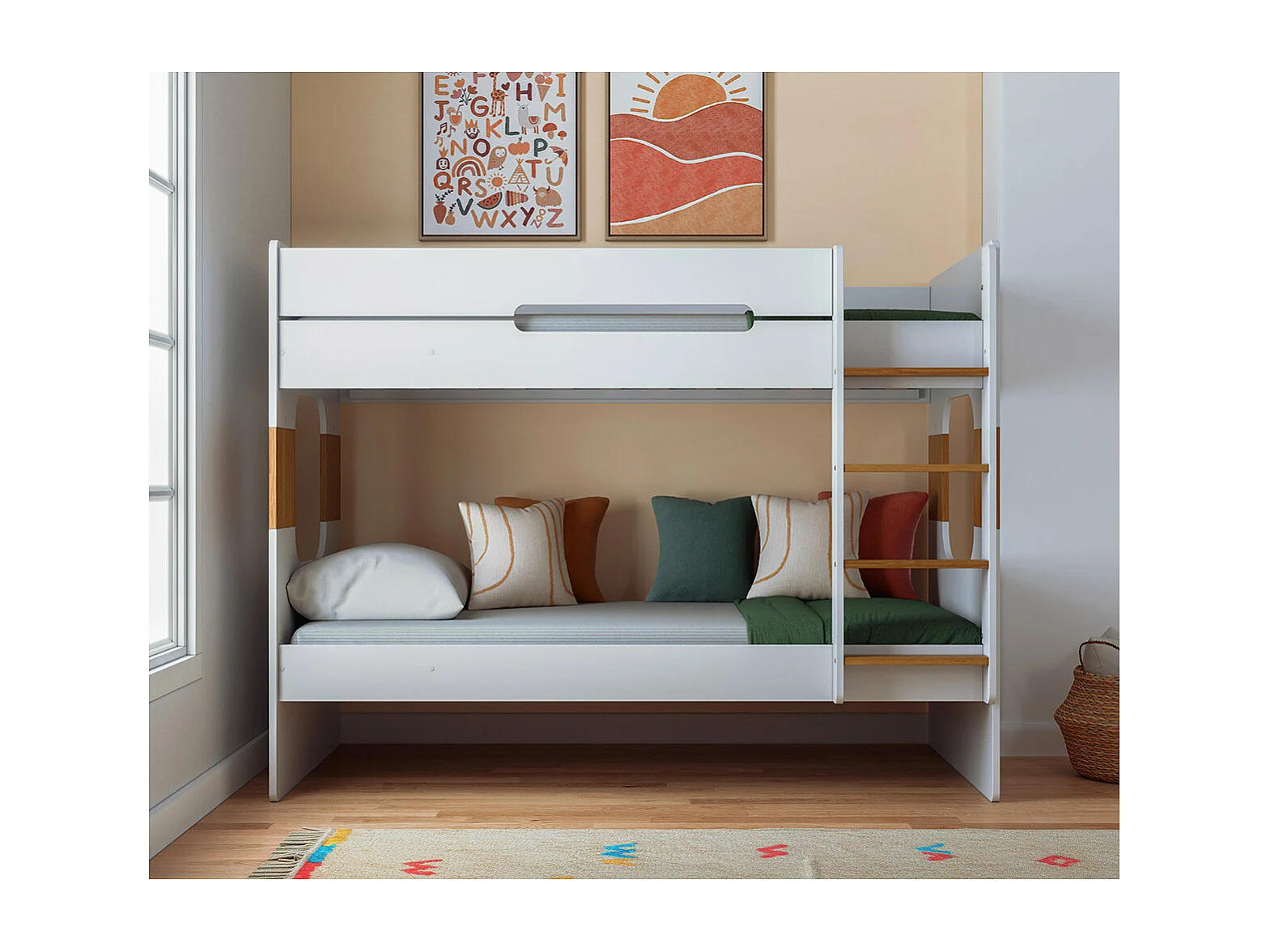 Pack lit superposé avec matelas 90x190 cm panneaux de fibres blanc et noisette LEJI