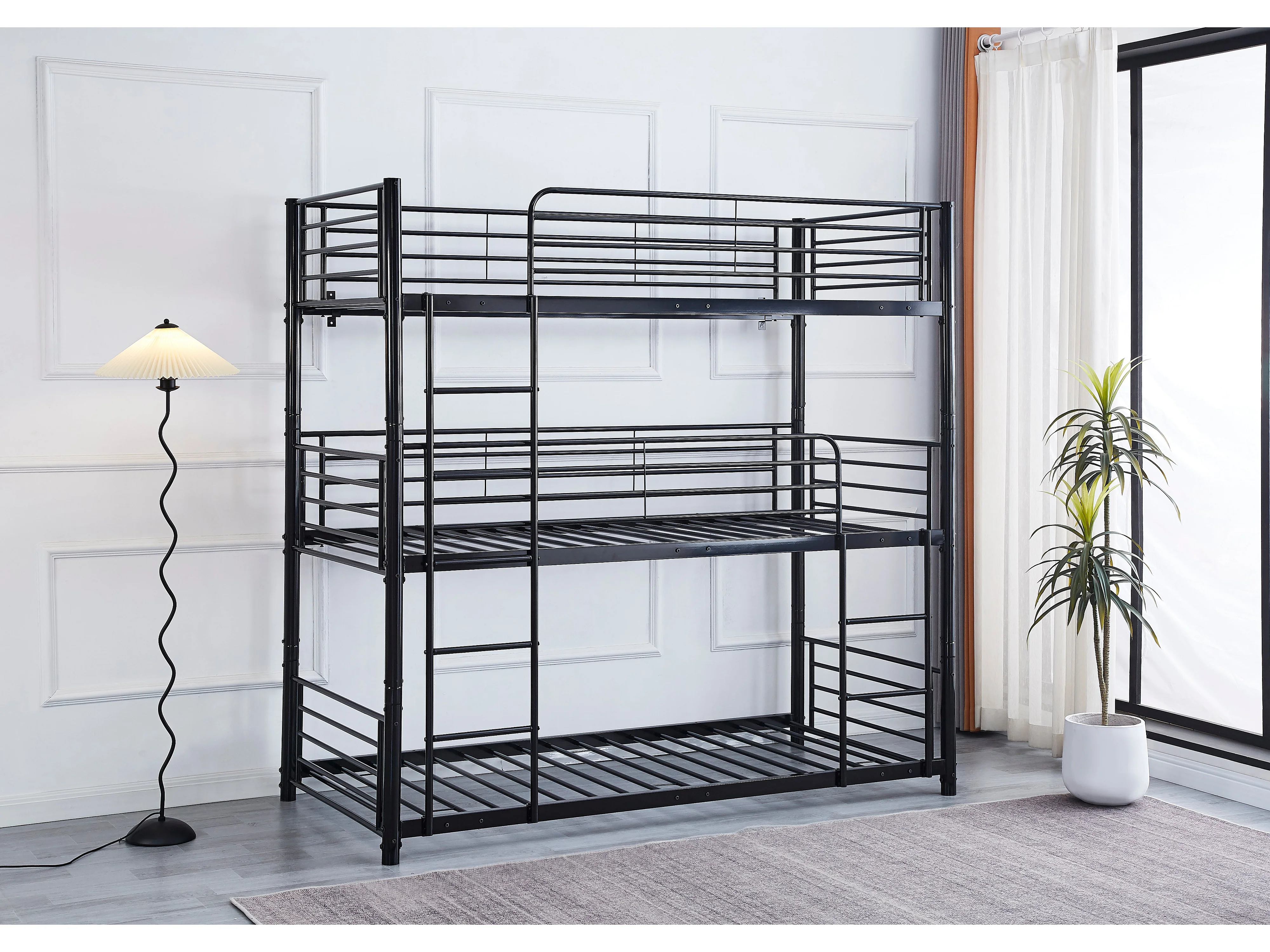 Pack: Lit superposé en métal TRIPLE 3 étages + Matelas compris 3 couchages 90x190 cm Noir