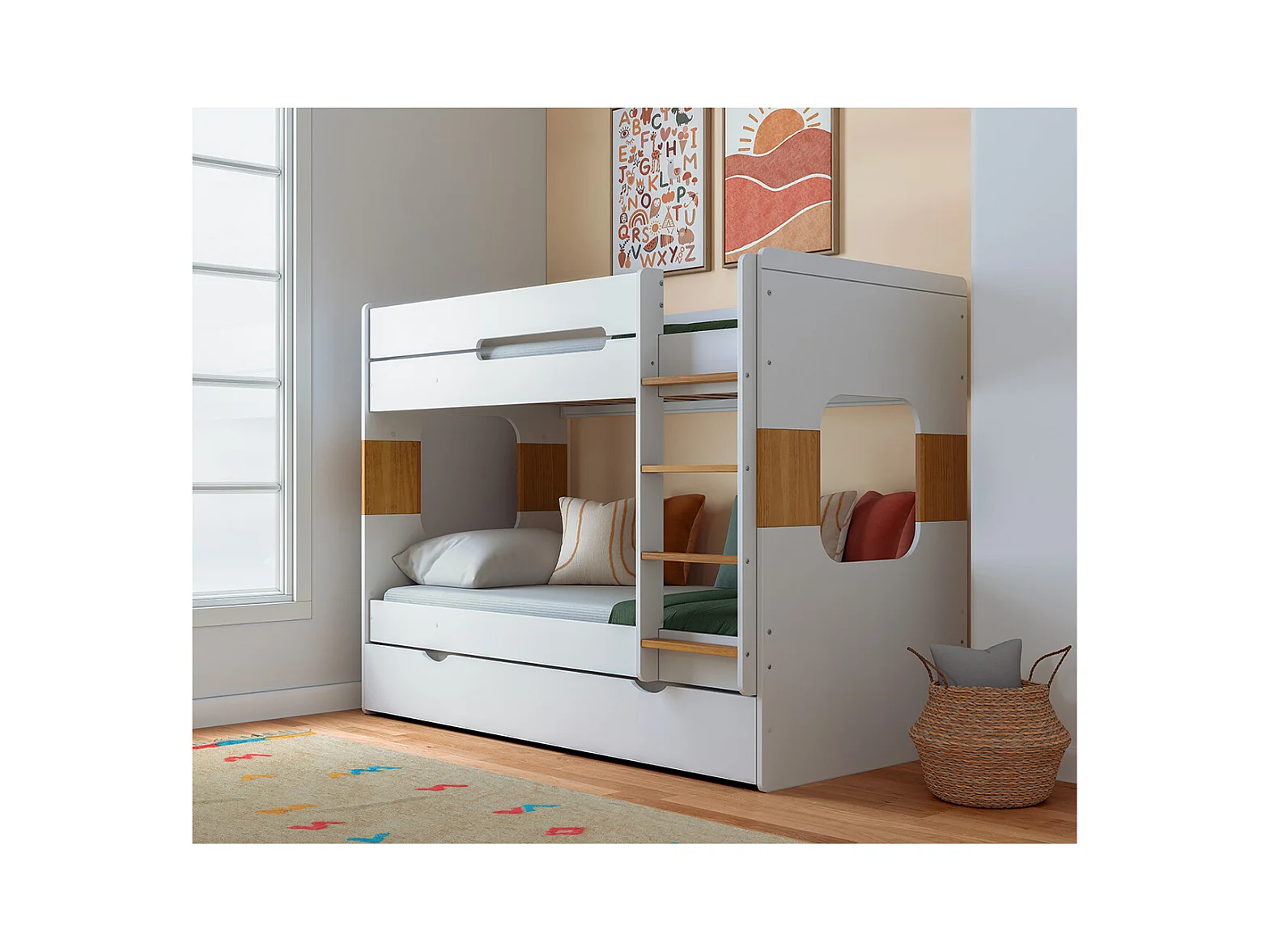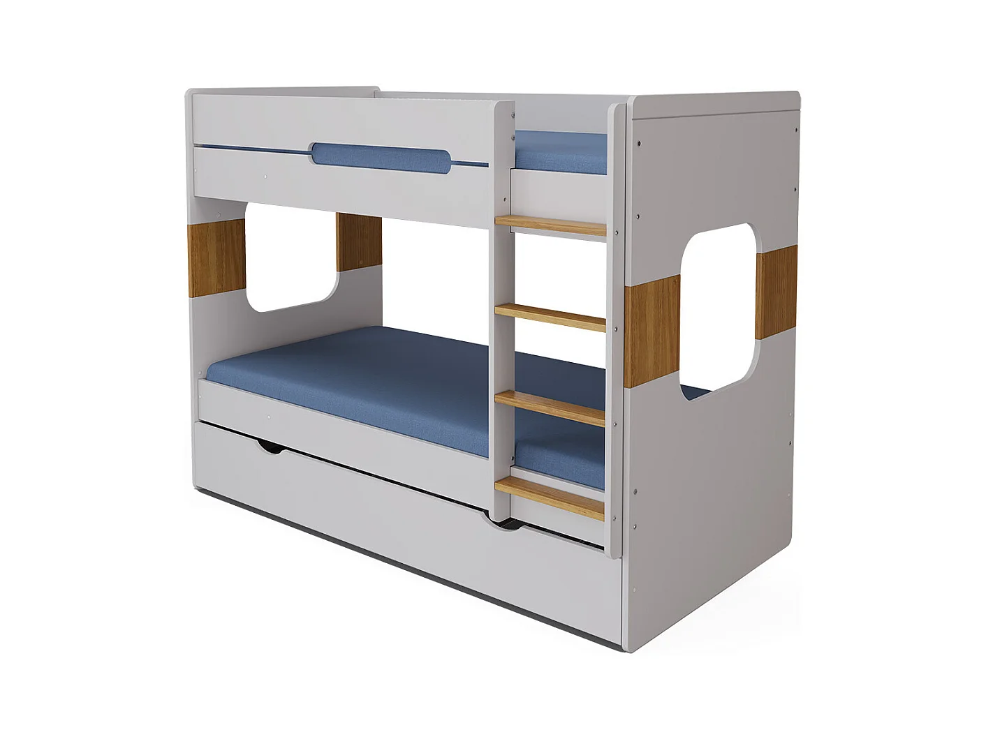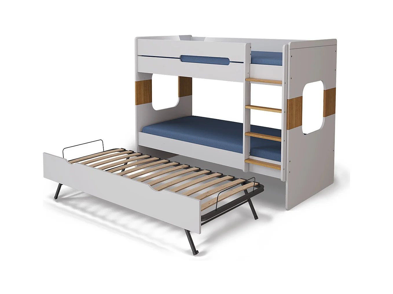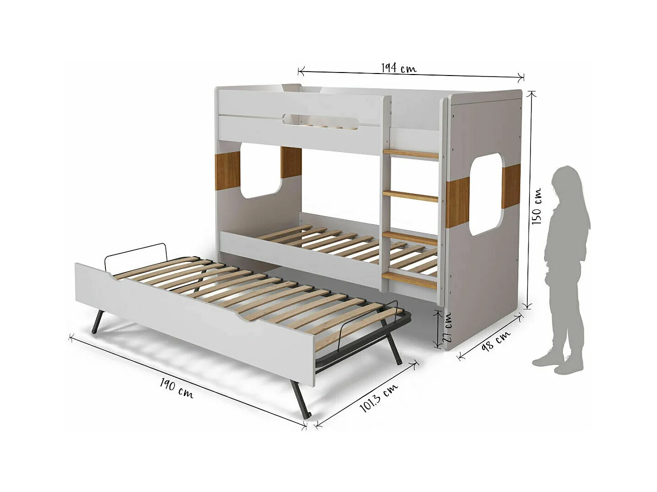 Pack lit superposé gigogne avec 2 matelas 90x190 cm panneaux de fibres blanc LEJI