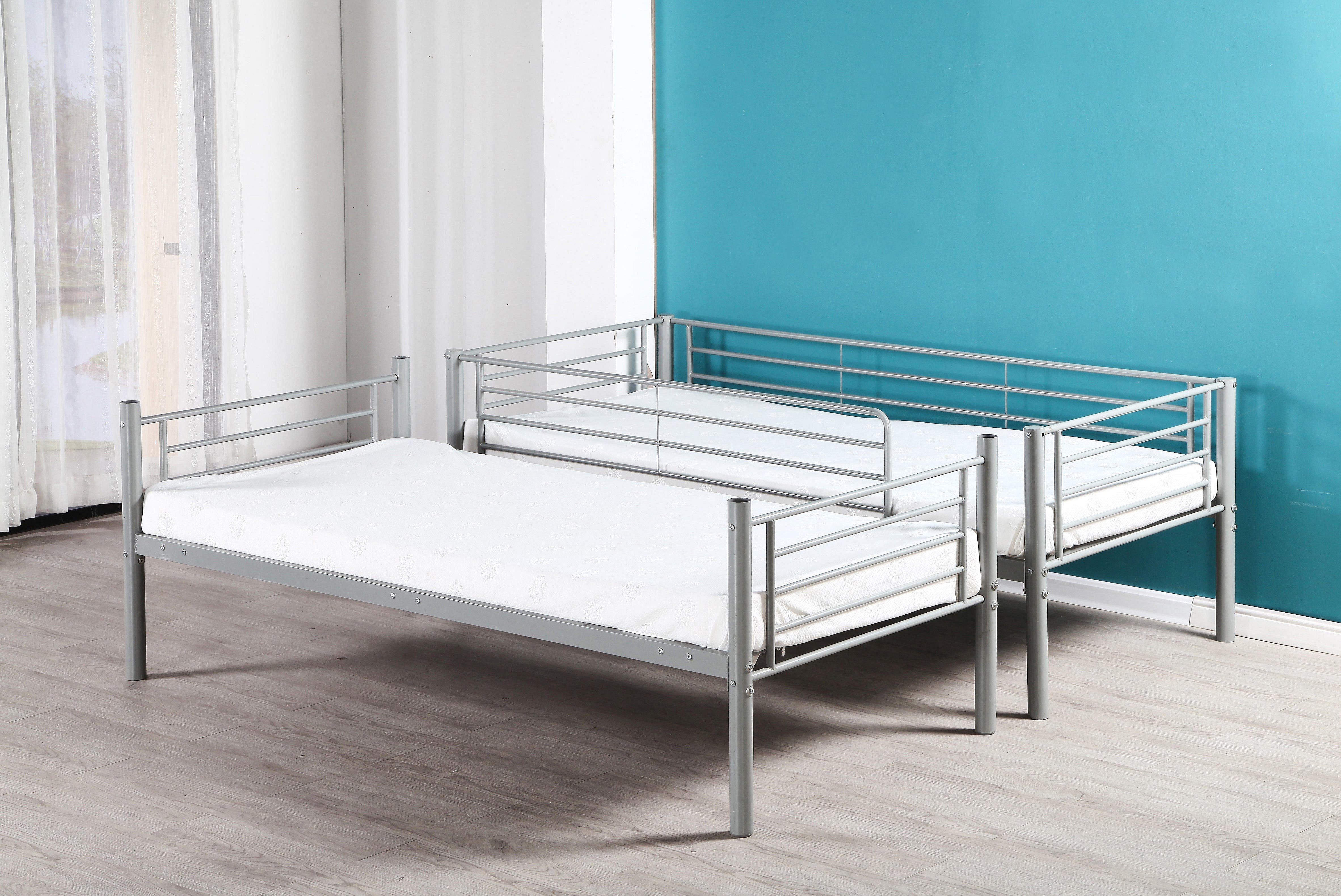 Pack : Lit superposé + Matelas compris Séparable métal LUNA 1+1 90x190 cm sommier inclus gris