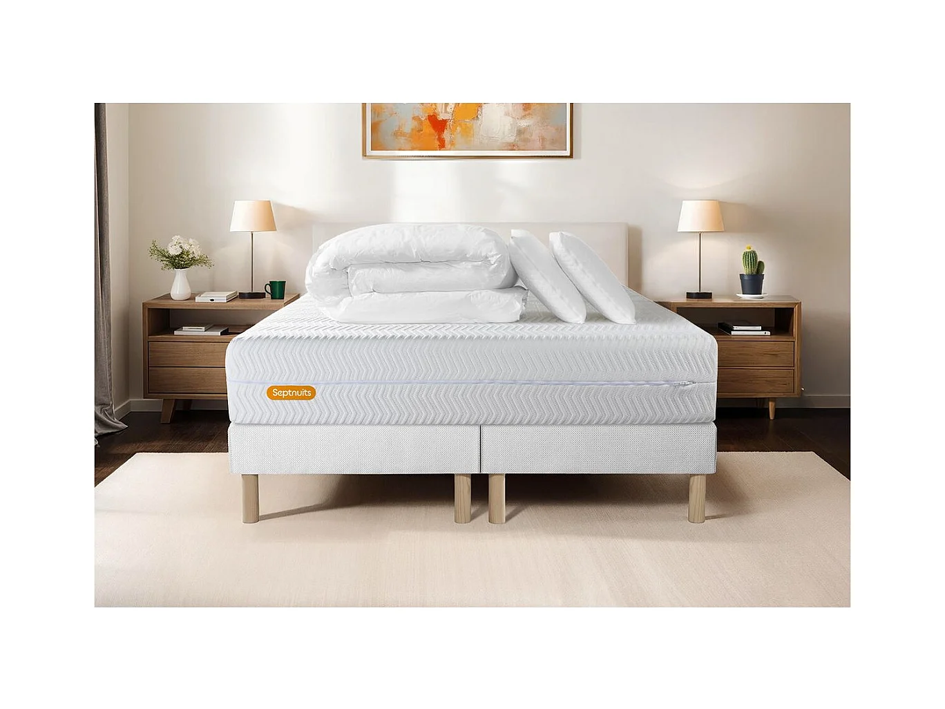 PACK Matelas 180x200 + double sommiers 90x200 Memo Bio Mousse à mémoire de forme 5 zones de confort Maxi épaisseur