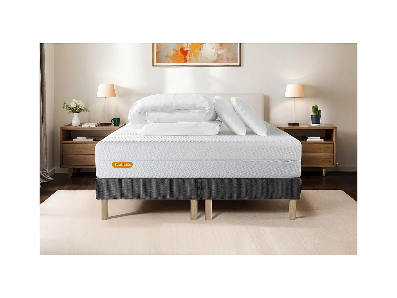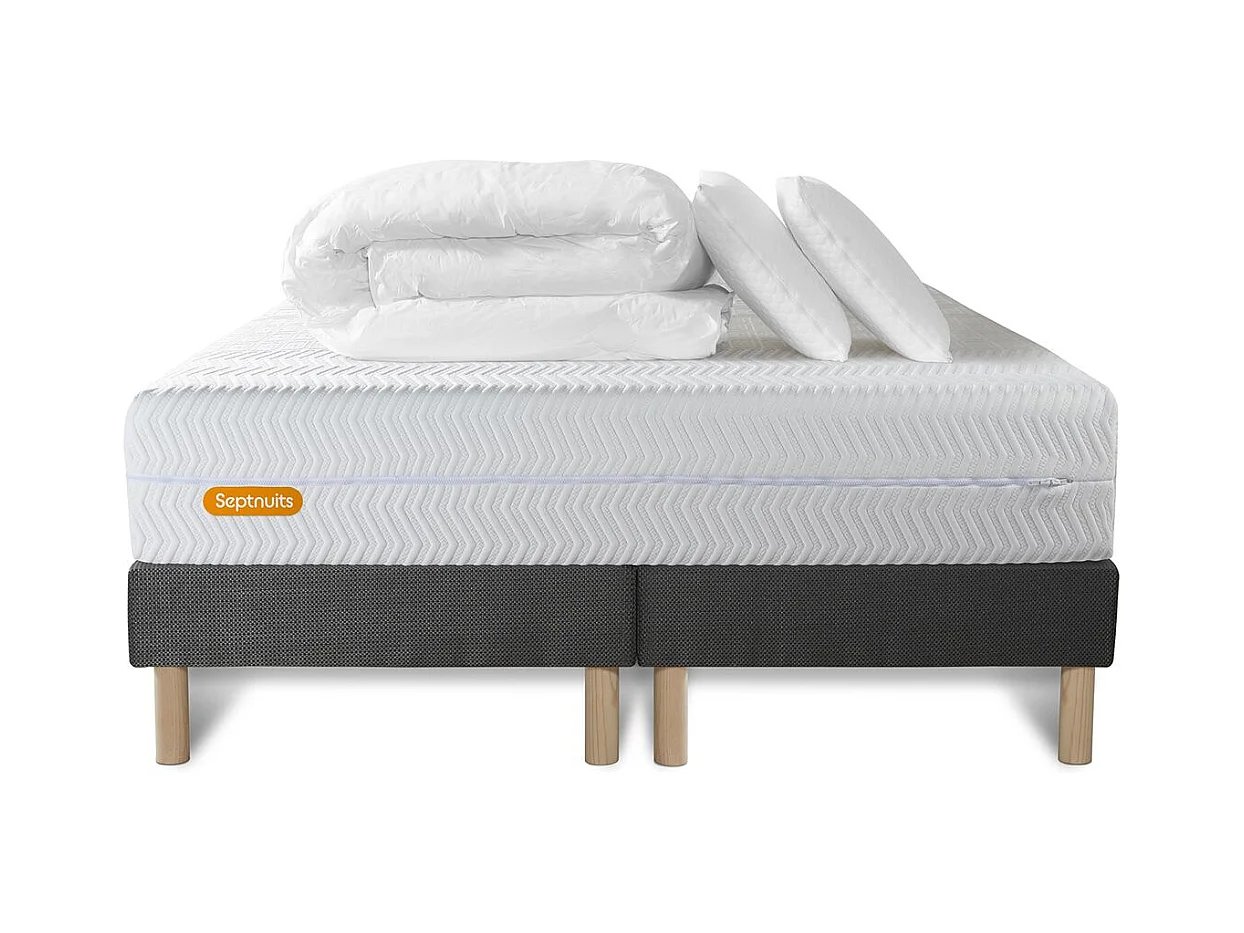 PACK Matelas 180x200 + double sommiers gris 90x200 Memo Bio Mousse à mémoire de forme 5 zones de confort Maxi épaisseur