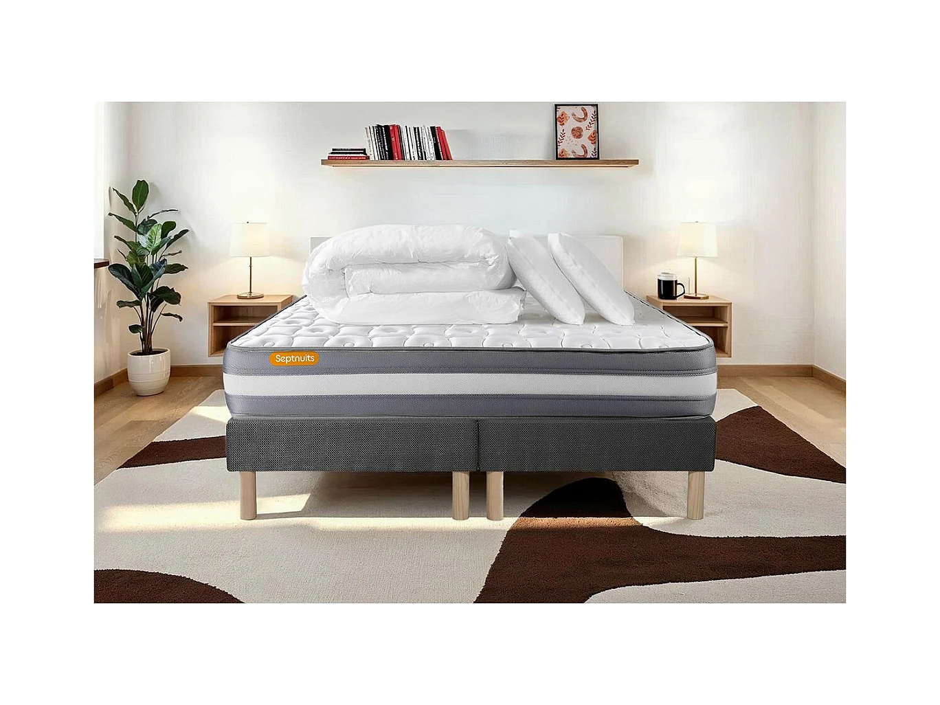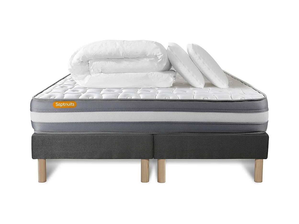 PACK matelas 180x200 + double sommiers gris 90x200 Memo Plus Mémoire de forme 3 zones + 2 oreillers + couette