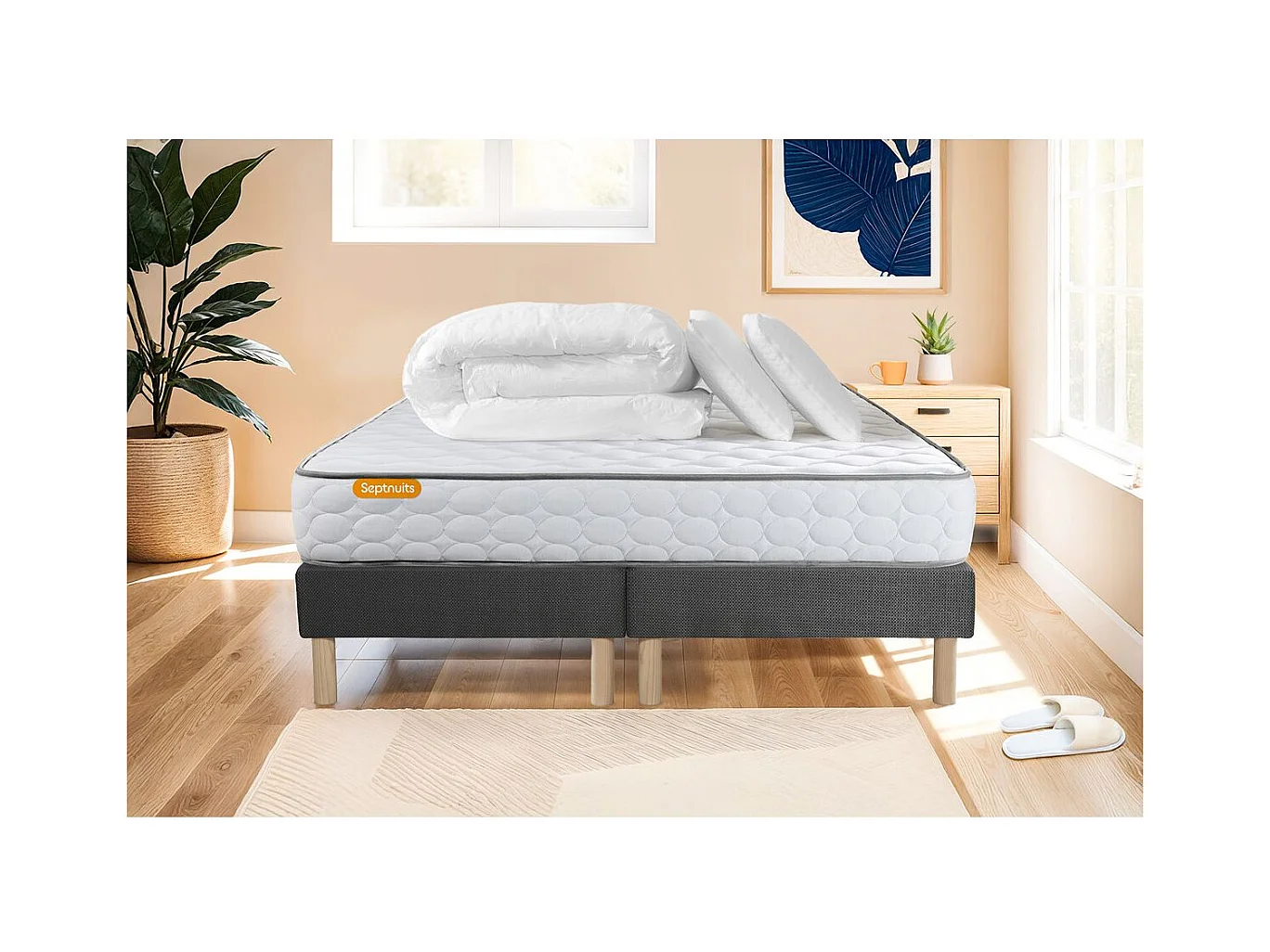 Pack matelas Memo + double sommiers gris 160x200 + 2 oreillers mémoire de forme