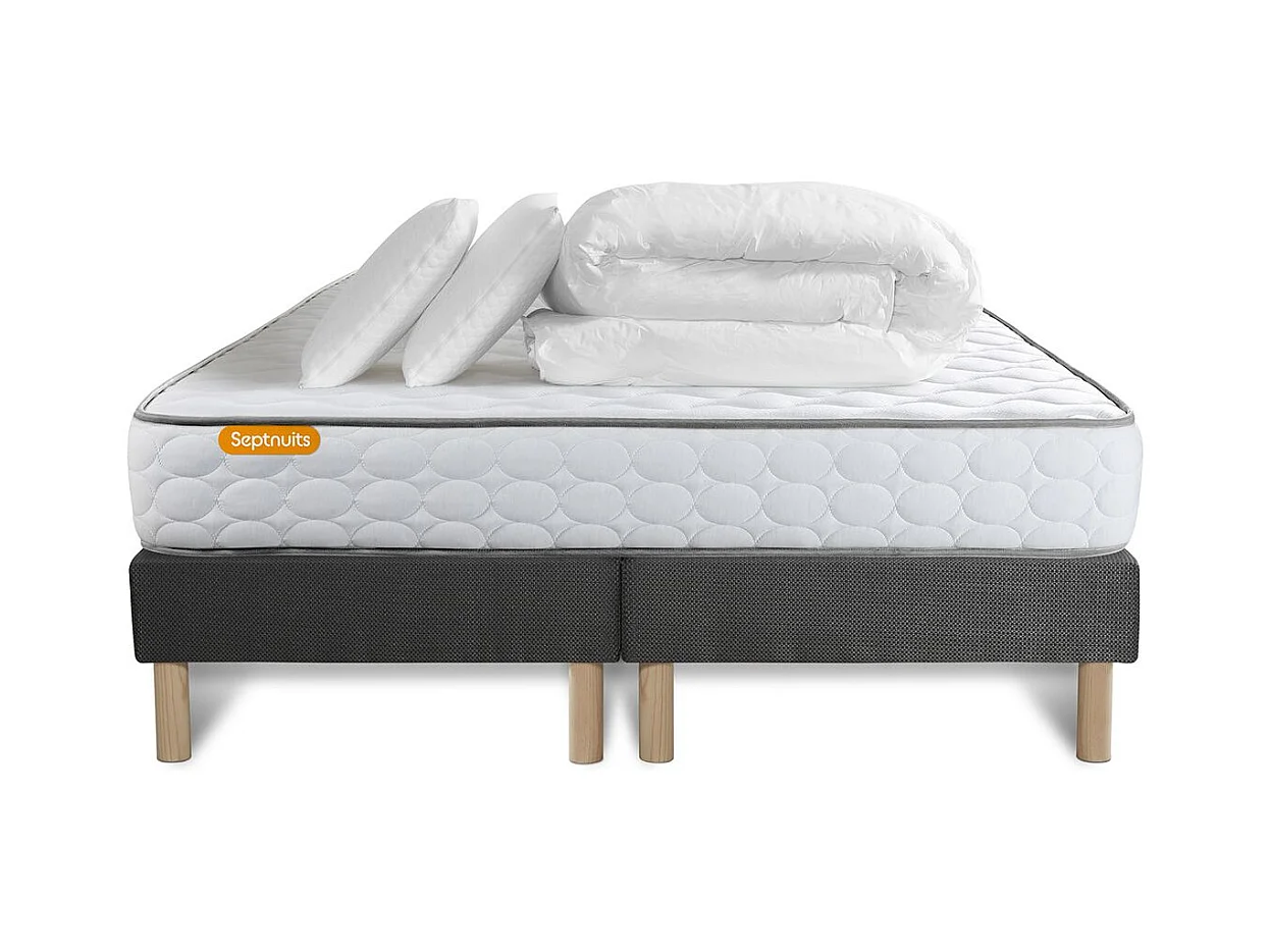 Pack matelas Memo + double sommiers gris 180x200 + 2 oreillers mémoire de forme