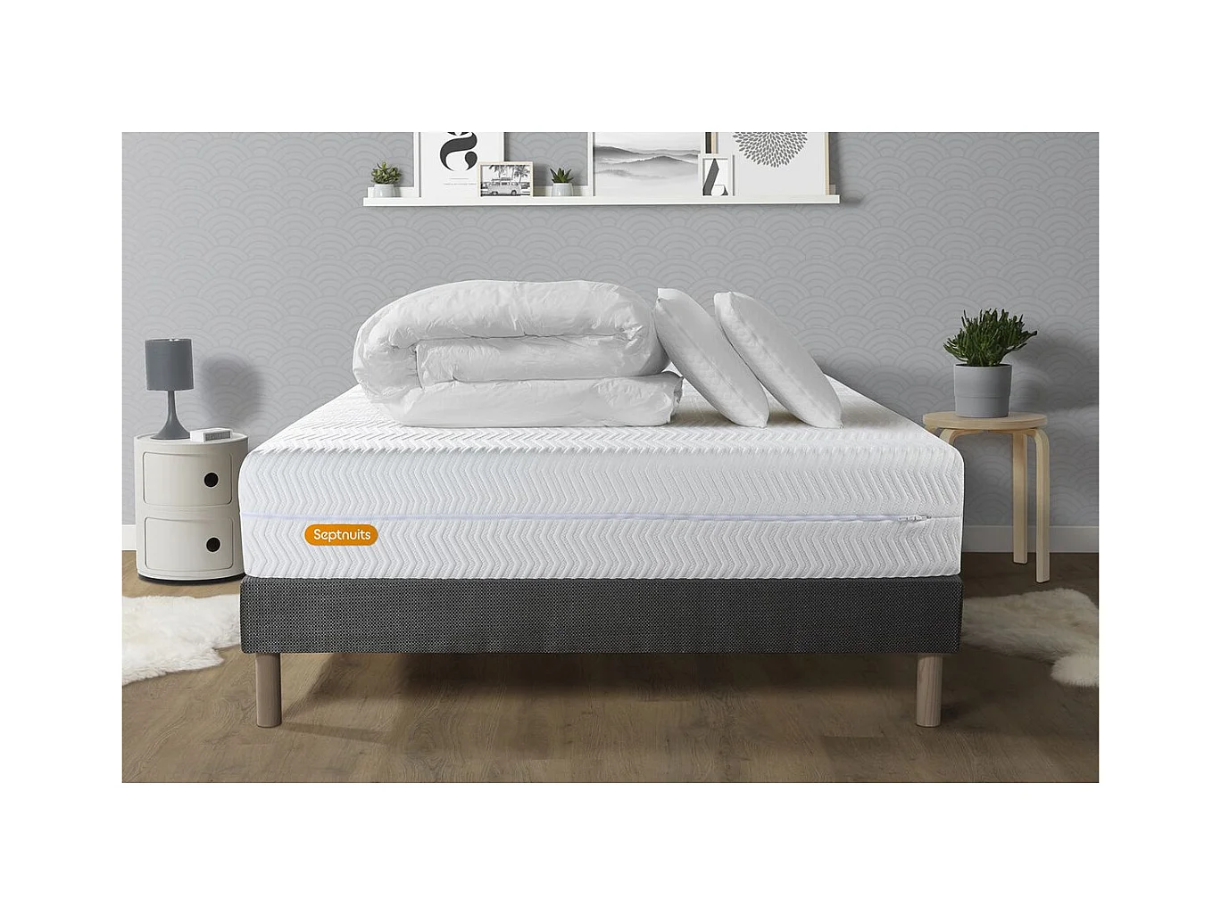 PACK Matelas + sommier gris 140x190 Memo Bio Mousse à mémoire de forme 5 zones de confort Maxi épaisseur + Couette + 2 oreiller