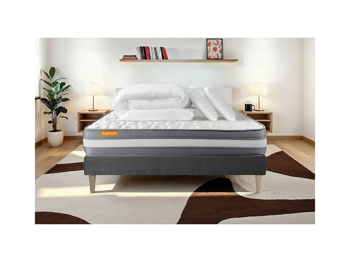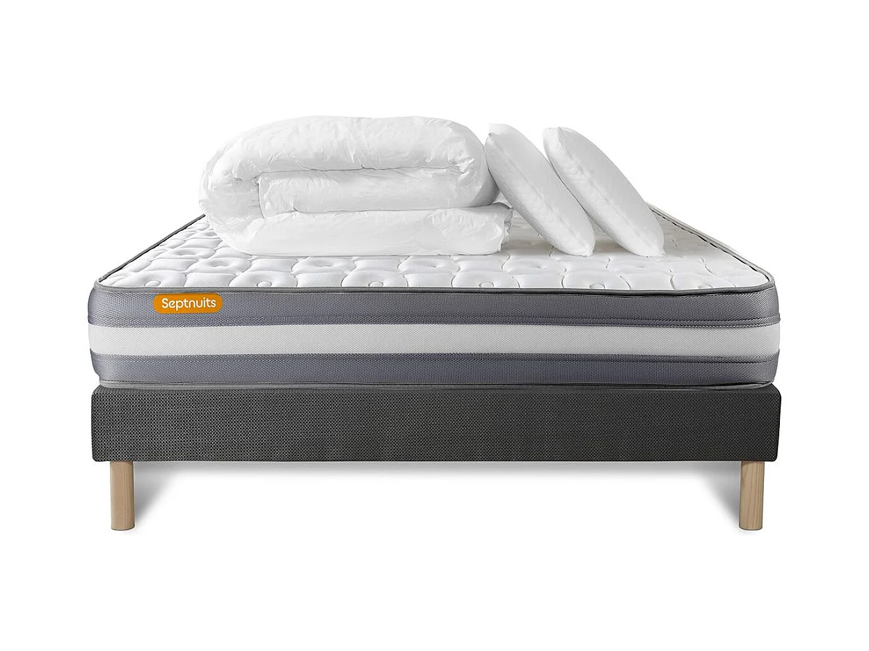 PACK matelas + sommier gris 140x200 Memo Plus Mémoire de forme 3 zones + 2 oreillers + couette