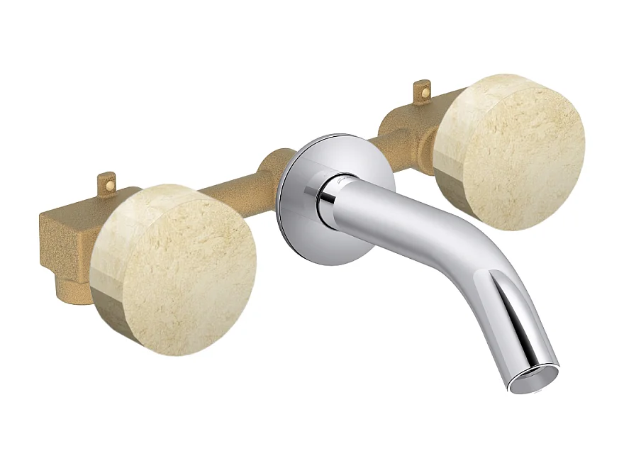 Pack mélangeur lavabo encastré 3 trous JACOB DELAFON Grands Boulevards marbré travertin sable et chromé