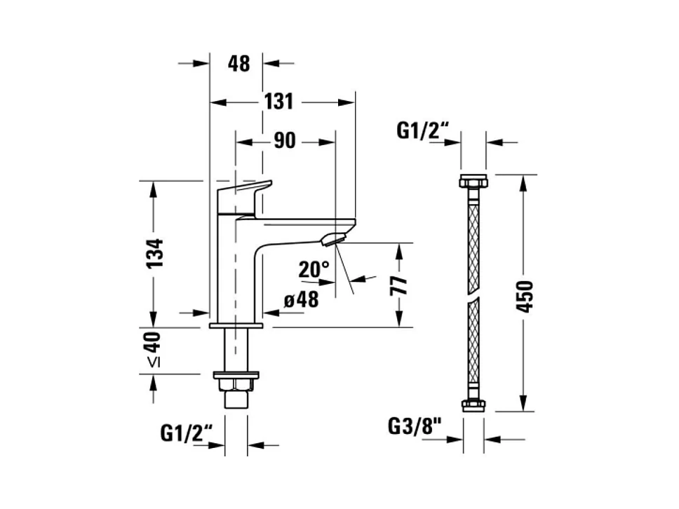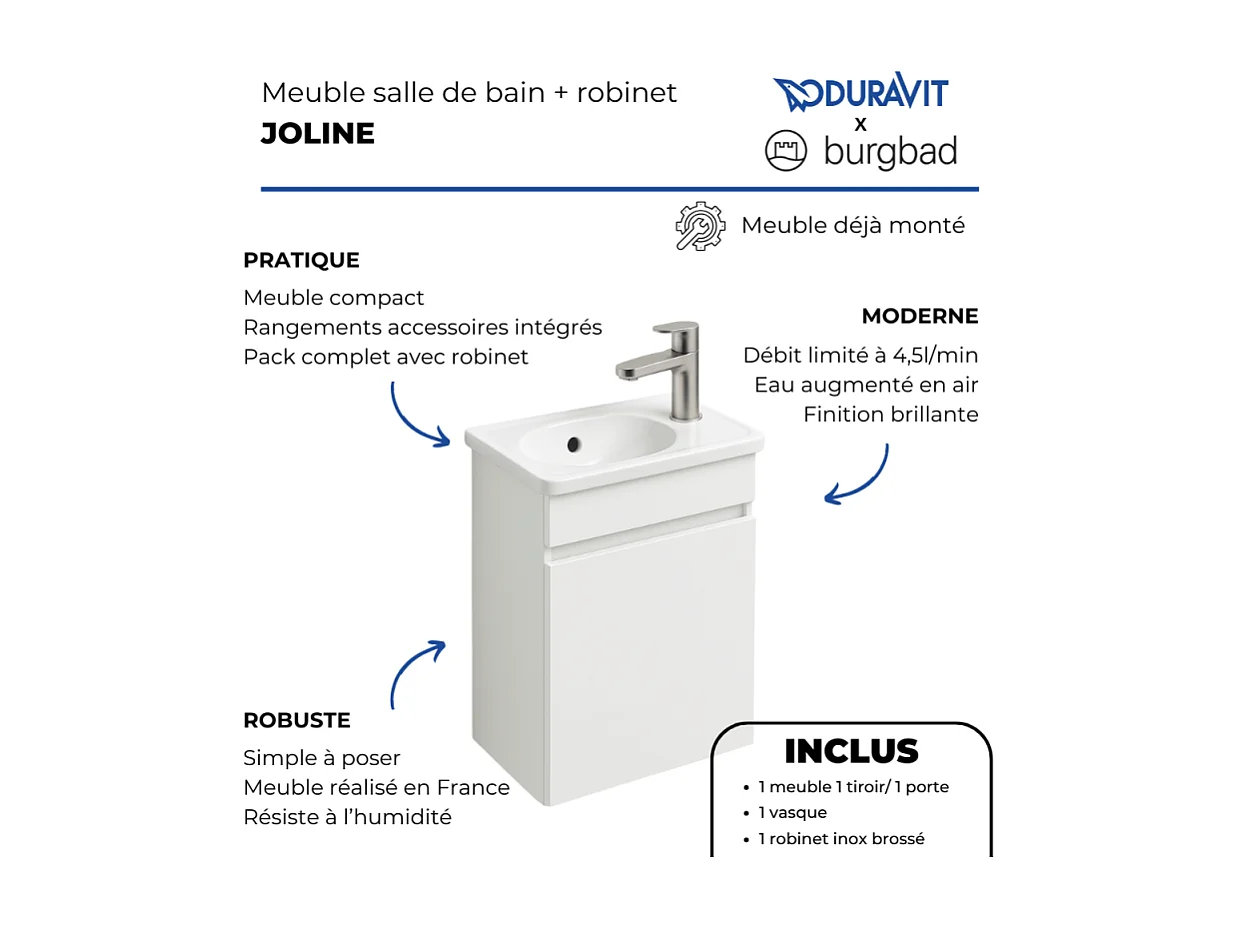 Pack meuble suspendu lave-mains BURGBAD Joline blanc mat + Robinet lave-mains eau froide Duravit Wave Inox brossé