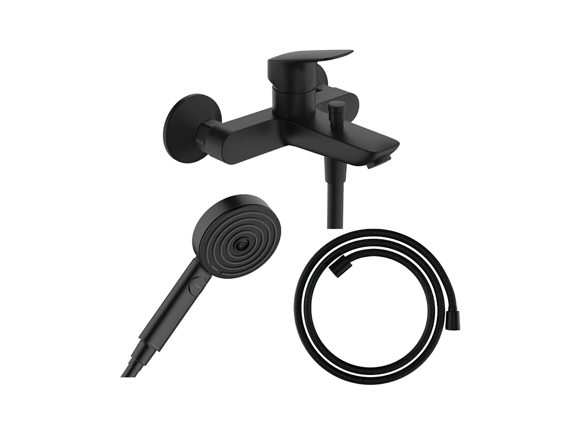 Pack mitigeur bain douche HANSGROHE Logis + Flexible Designflex + Pommeau HANSGROHE Pulsify Select 105 3 jets noir mat