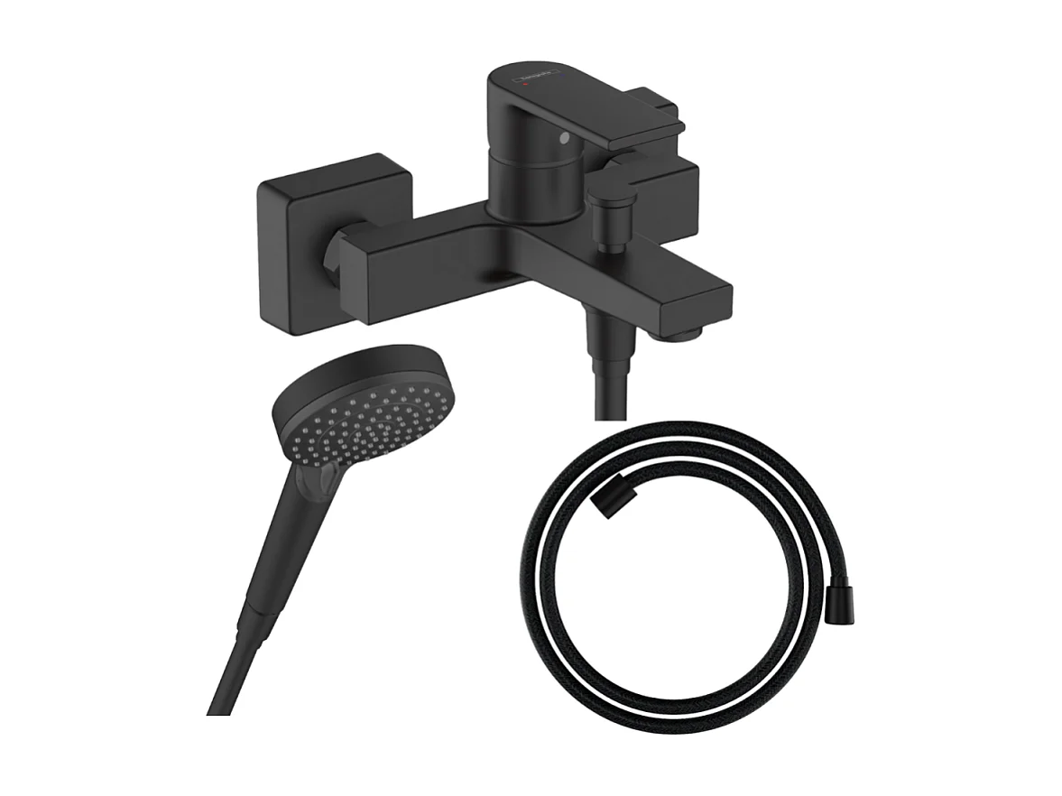 Pack mitigeur bain douche HANSGROHE Vernis Shape + Flexible Designflex + Pommeau HANSGROHE Vernis Blend 100 Vario noir mat