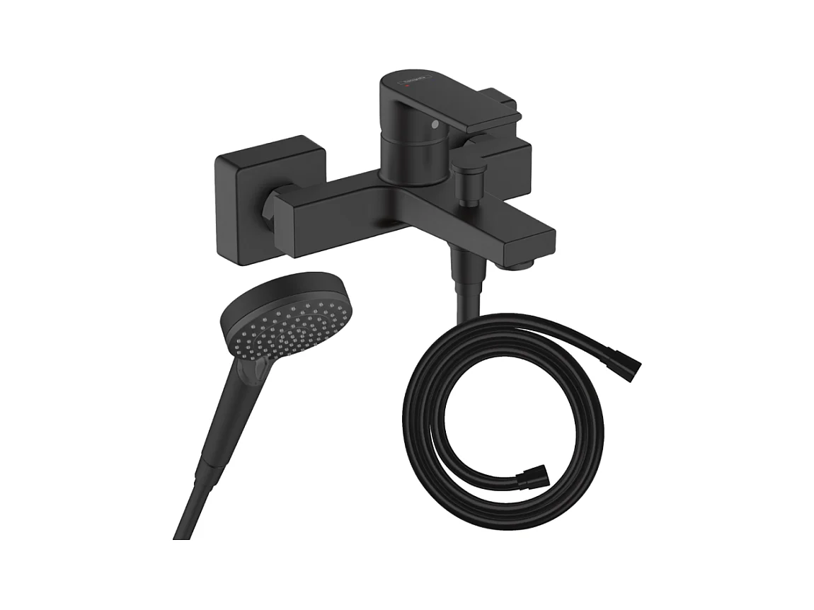 Pack mitigeur bain douche HANSGROHE Vernis Shape + Flexible Isiflex + Pommeau HANSGROHE Vernis Blend 100 Vario noir mat