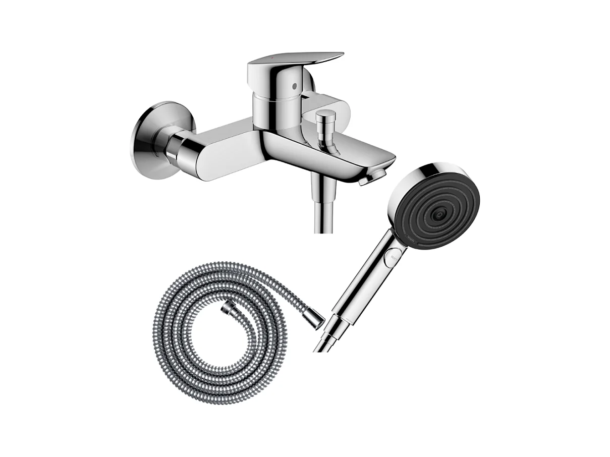 Pack mitigeur bain douche mécanique HANSGROHE Logis + Flexible Metaflex + Pommeau Pulsify Select EcoSmart 105 3jets chromé
