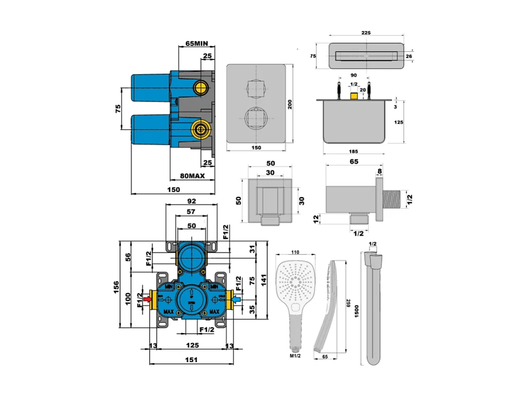 Pack mitigeur bain douche thermostatique encastré carré PAINI Ruby Noir Mat