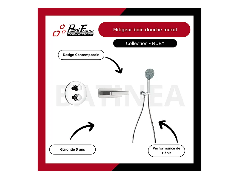Pack mitigeur bain douche thermostatique encastré rond PAINI Ruby Chrome
