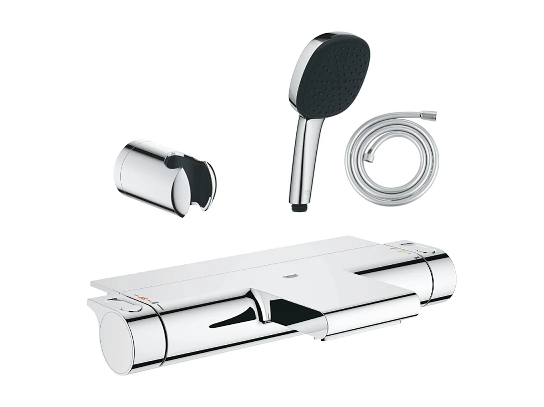 Pack mitigeur bain douche thermostatique GROHE Grohtherm 2000 + Douchette 2 jets GROHE Comfort110 + Flexible1750 mm et support