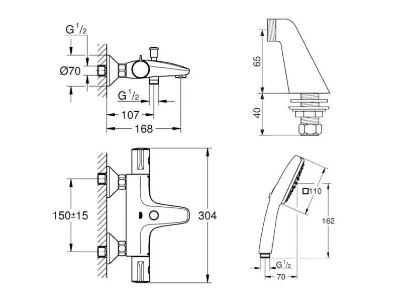 Pack mitigeur bain douche thermostatique GROHE Grohtherm 800 + douchette ronde 2 jets + flexible