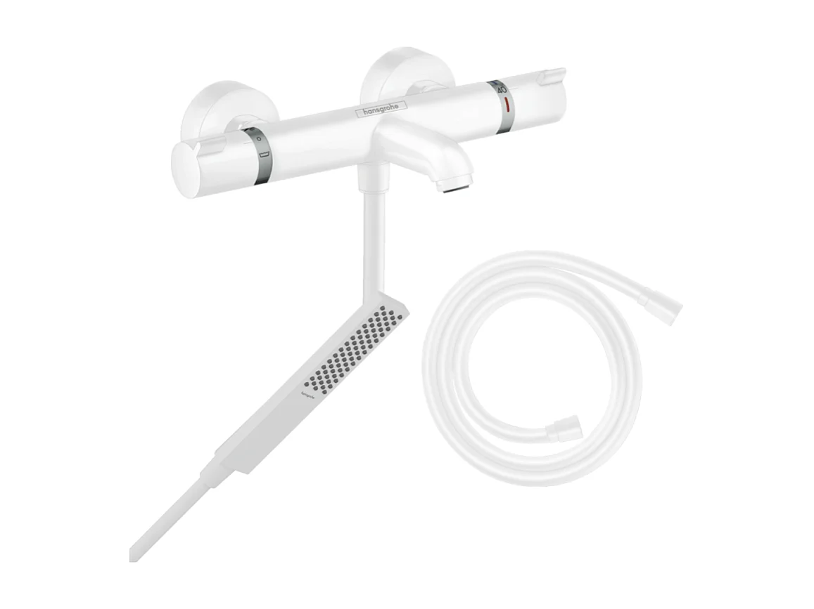 Pack mitigeur bain douche thermostatique HANSGROHE Ecostat Comfort + Flexible Isiflex + Pommeau Pulsify E blanc mat