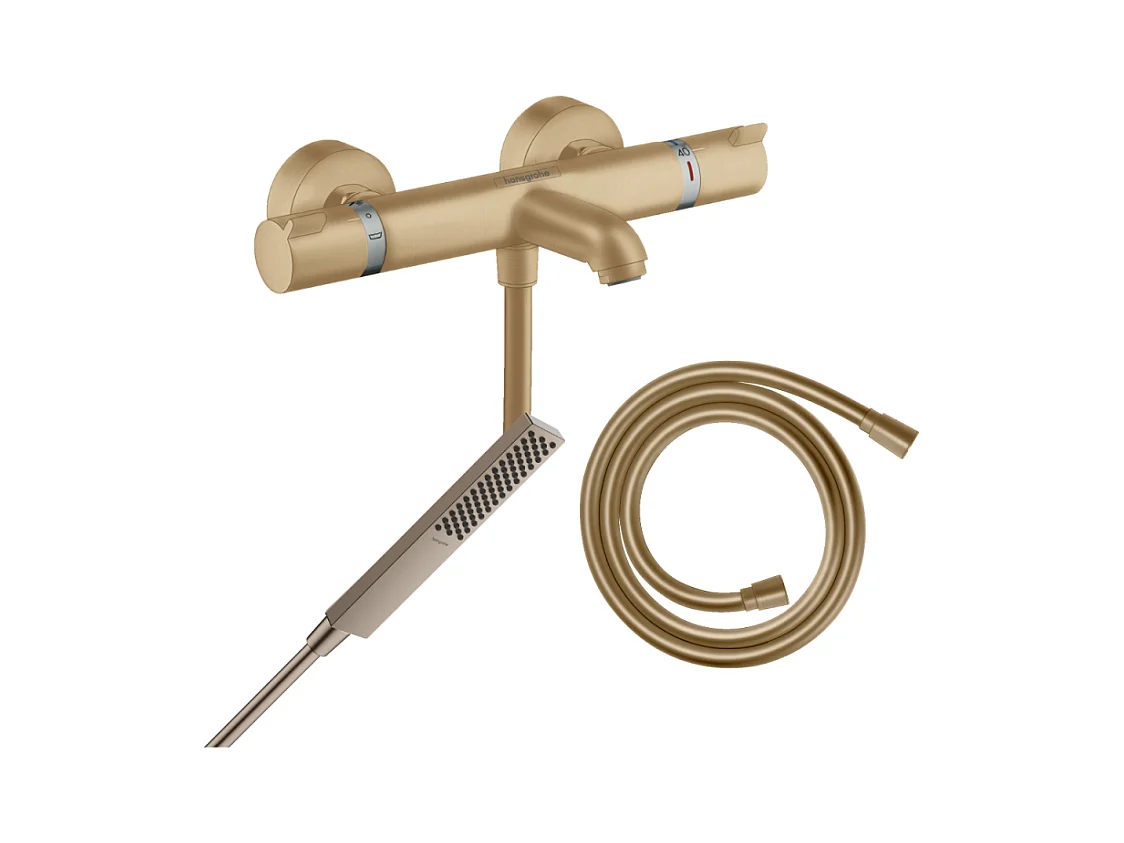 Pack mitigeur bain douche thermostatique HANSGROHE Ecostat Comfort + Flexible Isiflex + Pommeau Pulsify E bronze brossé