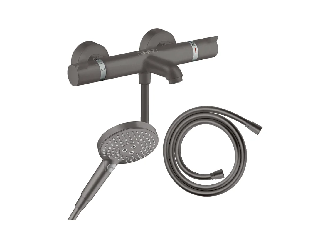Pack mitigeur bain douche thermostatique HANSGROHE Ecostat Comfort + Flexible Isiflex + Pommeau Raindance Select 3jets noir
