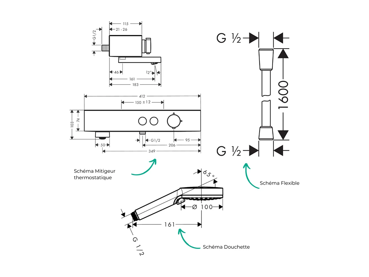 Pack mitigeur bain douche thermostatique HANSGROHE ShowerTablet Select + Flexible Designflex + Pommeau de douche Vernis Blend Noir mat