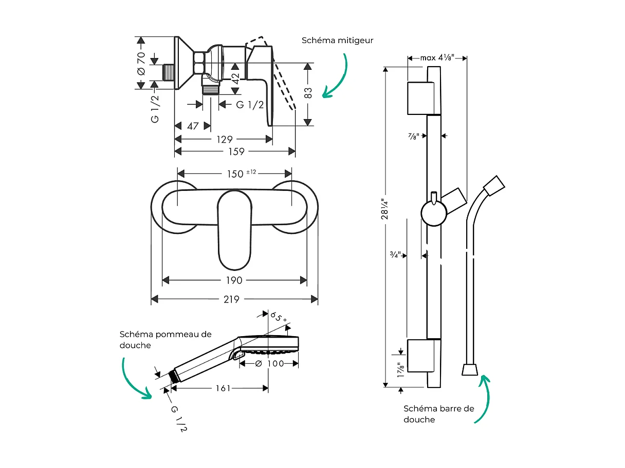 Pack mitigeur douche mécanique HANSGROHE Vernis Blend + Barre Unica S Puro + flexible + Pommeau Vernis Blend Vario chromé