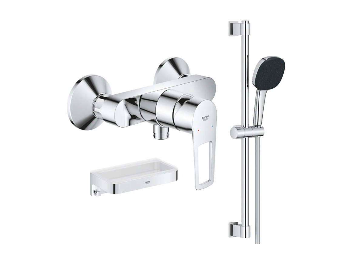 Pack mitigeur douche mécanique GROHE StartLoop + Ensemble de douche 2 jets avec barre + Panier douche